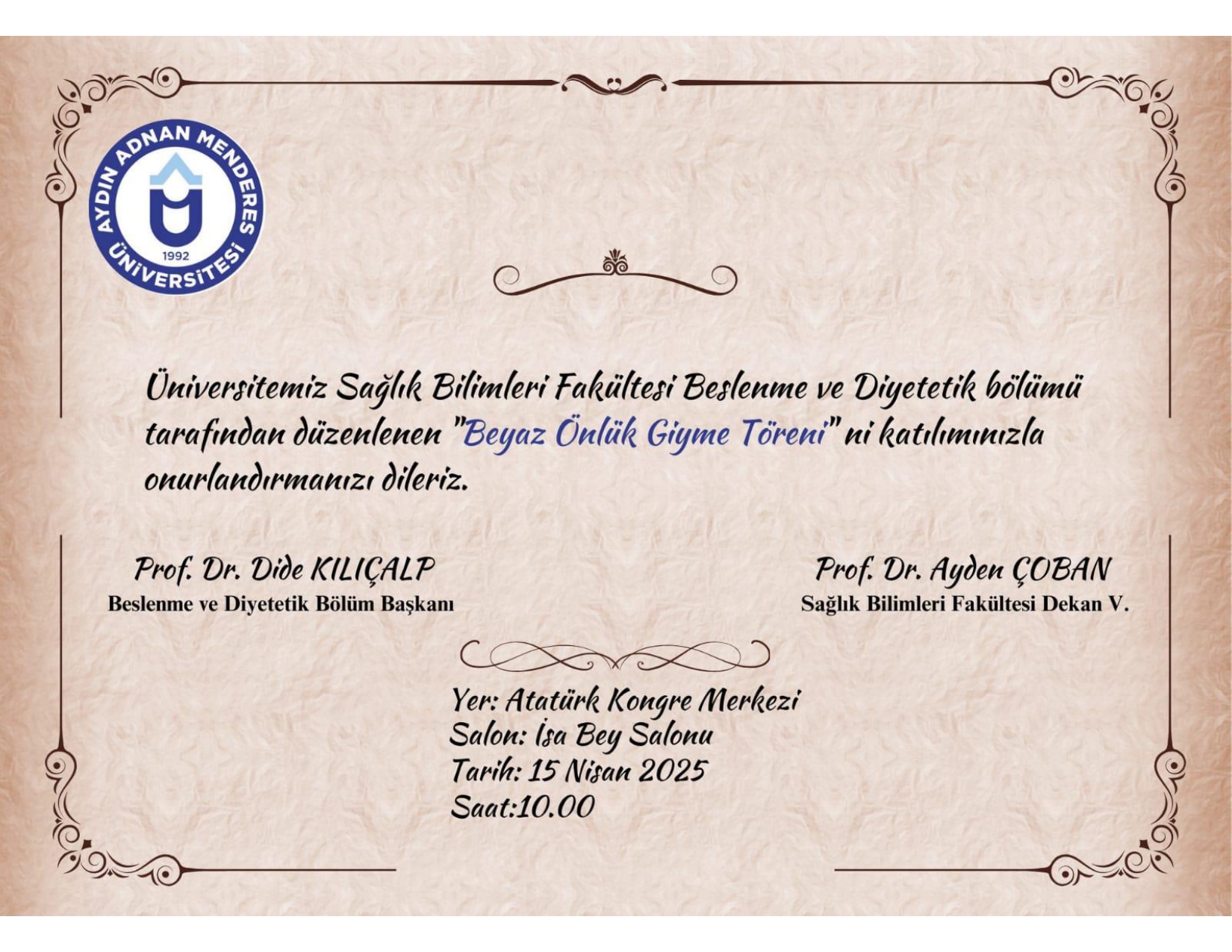 📢 Fakültemiz Beslenme ve Diyetetik Bölümü Öğrencilerinin Önlük Giyme Töreni