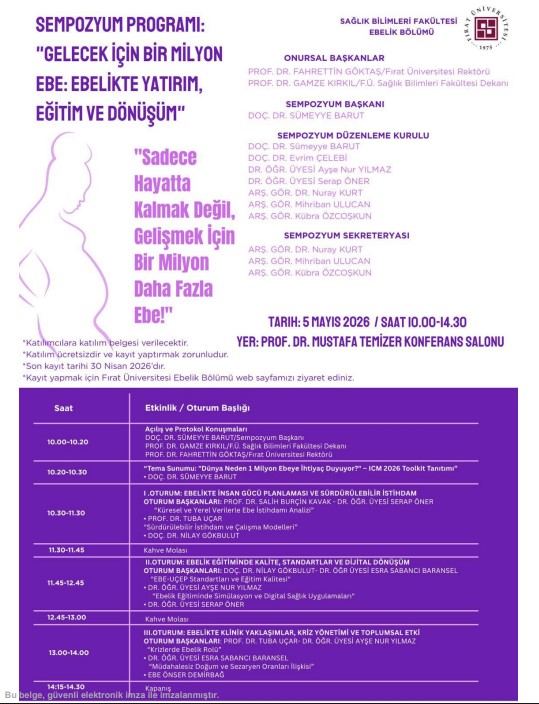 Fırat Üniversitesi Sağlık Bilimleri Fakültesi Ebelik Bölümü tarafından 05 Mayıs 2026 tarihinde