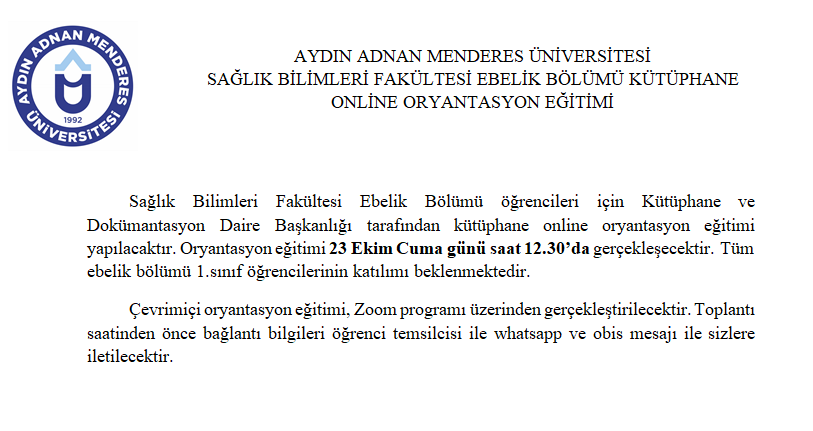 Ebelik Bölümü Kütüphane Oryantasyon Eğitimi