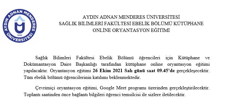 Ebelik Bölümü Kütüphane Oryantasyon Eğitimi