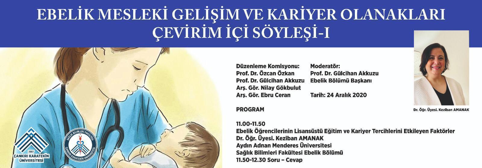 Ebelik Bölümü Dr. Öğr. Üyesi Keziban AMANAK'ın konuşmacı olarak katıldığı "Ebelik Mesleki Gelişim ve Kariyer Olanakları" konulu söyleşi