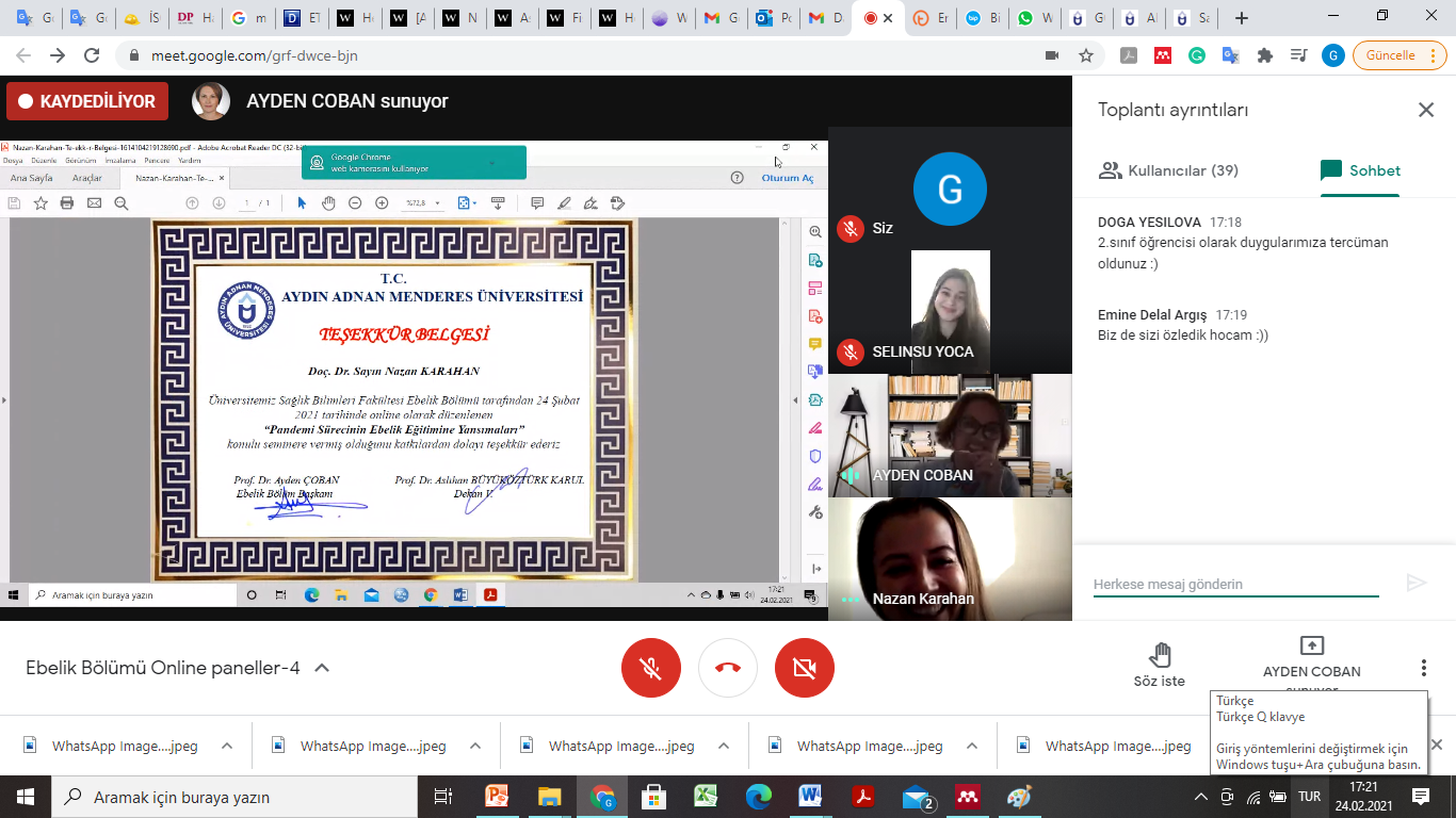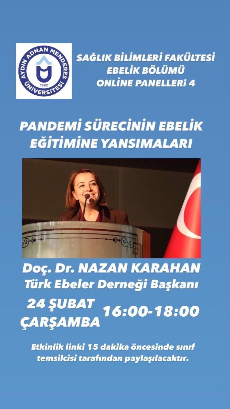 Aydın Adnan Menderes Üniversitesi Sağlık Bilimleri Fakültesi Ebelik Bölümü öğrencilerine yönelik “google meet” üzerinden yapılmış olan online panel-4’e ilişkin bilgiler aşağıda yer almaktadır. İlgili toplantı https://meet.google.com/grf-dwce-bjn koduyla kayıt edilmiştir.