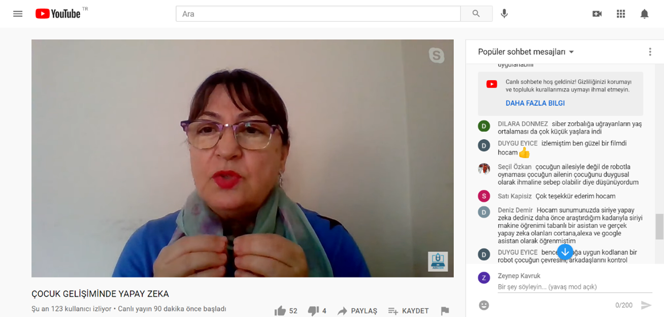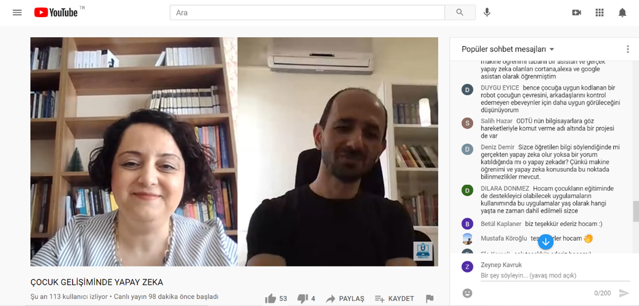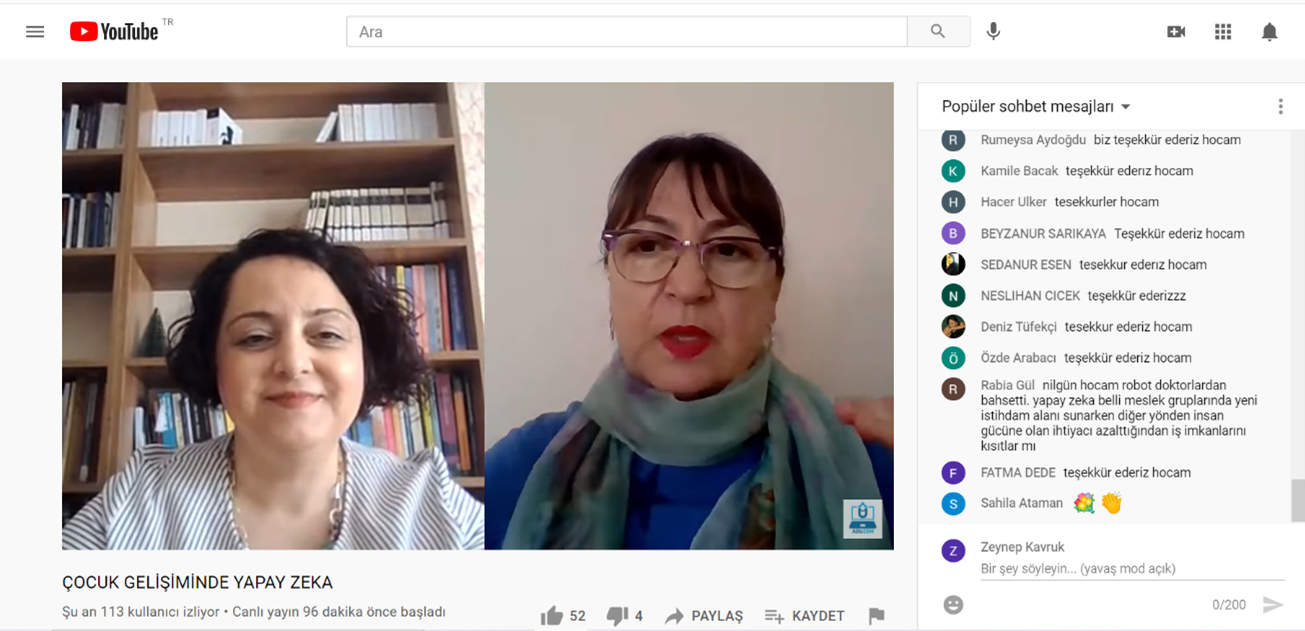 Öğrencilerin ve öğretim üyelerinin katılım gösterdiği yayında, Açılış konuşmasını Aydın Adnan Menderes Üniversitesi Sağlık Bilimleri Fakültesi Dekanı Prof. Dr. Aslıhan BÜYÜKÖZTÜRK KARUL tarafından yapılmıştır. Ardından Çocuk Gelişimi Bölüm Başkanı Doç. Dr. Selvinaz SAÇAN’ın moderatörlüğünü üstlendiği söyleşi gerçekleştirilmiştir. Söyleşide ODTÜ Mühendislik Fakültesi Bilgisayar Mühendisliği Bölümü Öğretim Üyesi Doç. Dr. Sinan KALKAN yapay zeka hakkında bilgiler sunmuş ve yapay zeka oluştururken çocukların öğrenme yöntemlerinden faydanıldığı üzerinde durmuştır. Bilgi Üniversitesi Sağlık Bilimleri Fakültesi Dekanı ve Çocuk Gelişimi Bölümü Öğretim Üyesi Prof.Dr. Nilgün SARP, çocuk gelişiminin yapay zekaya katkıları ve bir çocuk gelişimcinin yapay zekayı etkin bir şekilde nasıl kullanabileceği hakkında değerli bilgilerini paylaşmıştır.