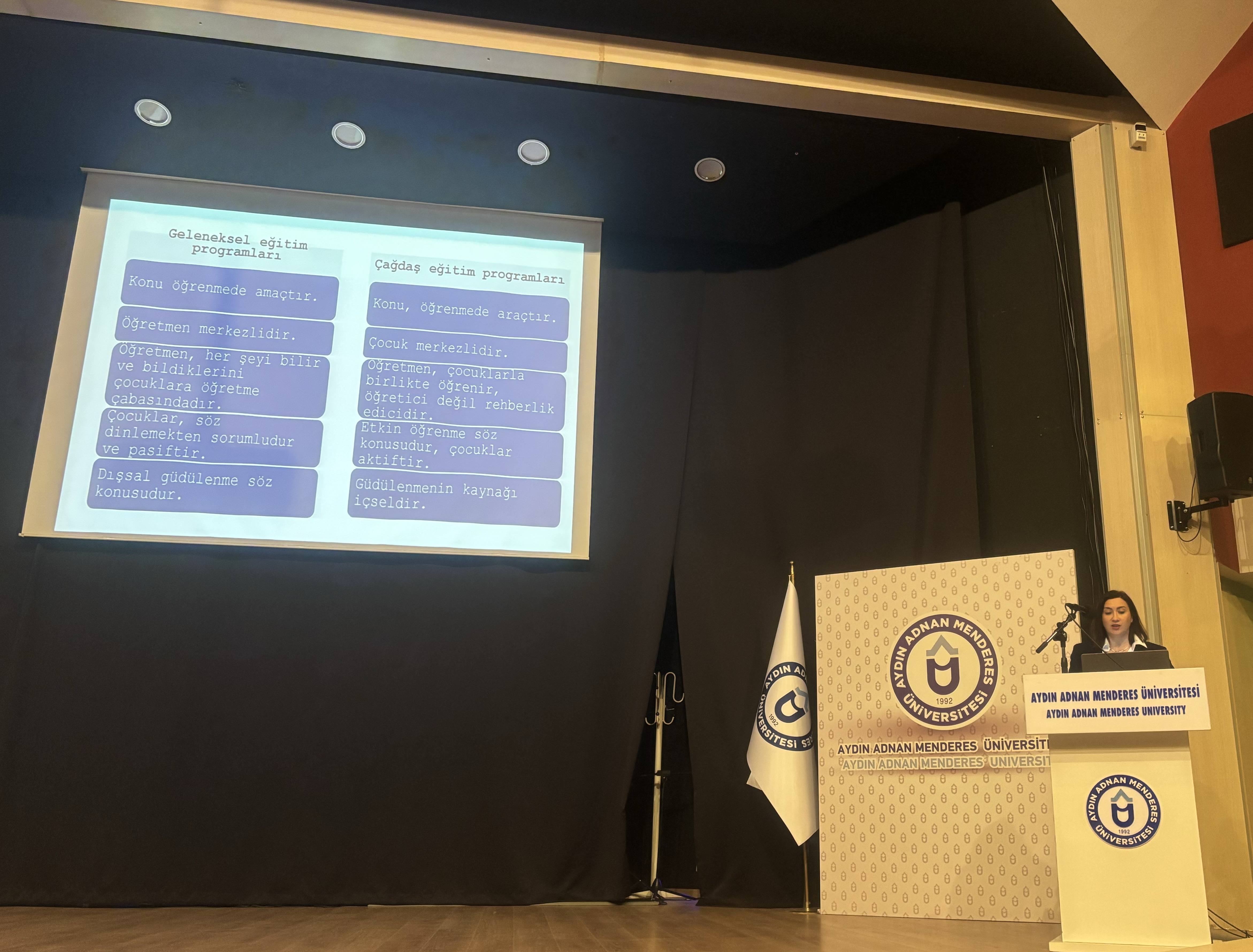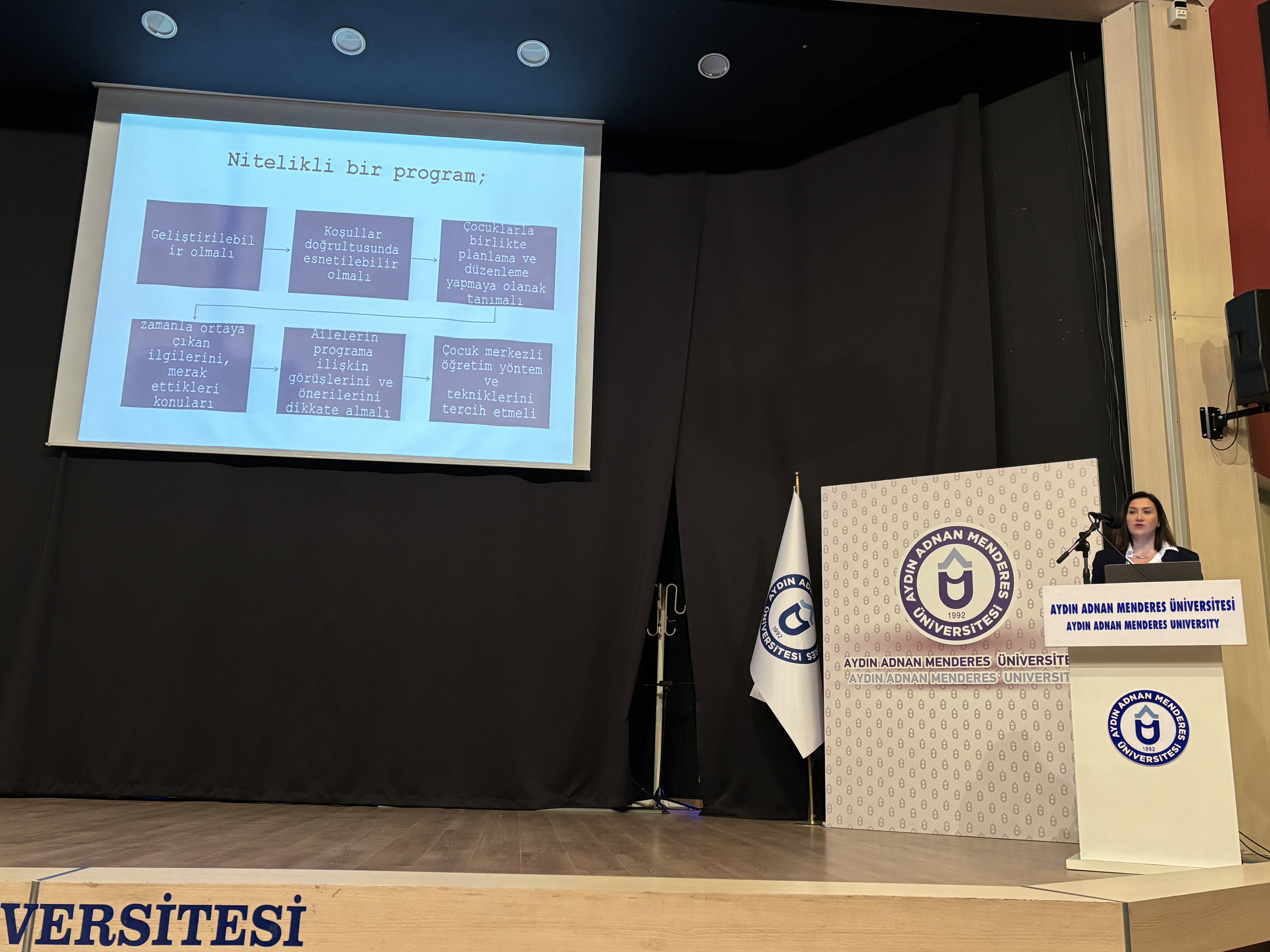 Seminerde, Üniversitemiz EÄŸitim Fakültesi Temel EÄŸitim Bölümü Okul Öncesi EÄŸitimi Anabilim Dalı ÖÄŸretim üyeleri Doç. Dr. Gözde İnal ve Doç. Dr. D. Esra Angın, "Erken Çocukluk EÄŸitim Programı" ile "MEB Türkiye Yüzyılı Maarif Modeli Güncel Okul Öncesi EÄŸitim Programı" hakkında detaylı bilgiler aktardı. Program içeriÄŸi, okul öncesi dönemde çocukların eÄŸitim süreçlerini destekleyen yeni uygulamalar ve yaklaşımlar üzerine yoÄŸunlaÅŸtı.