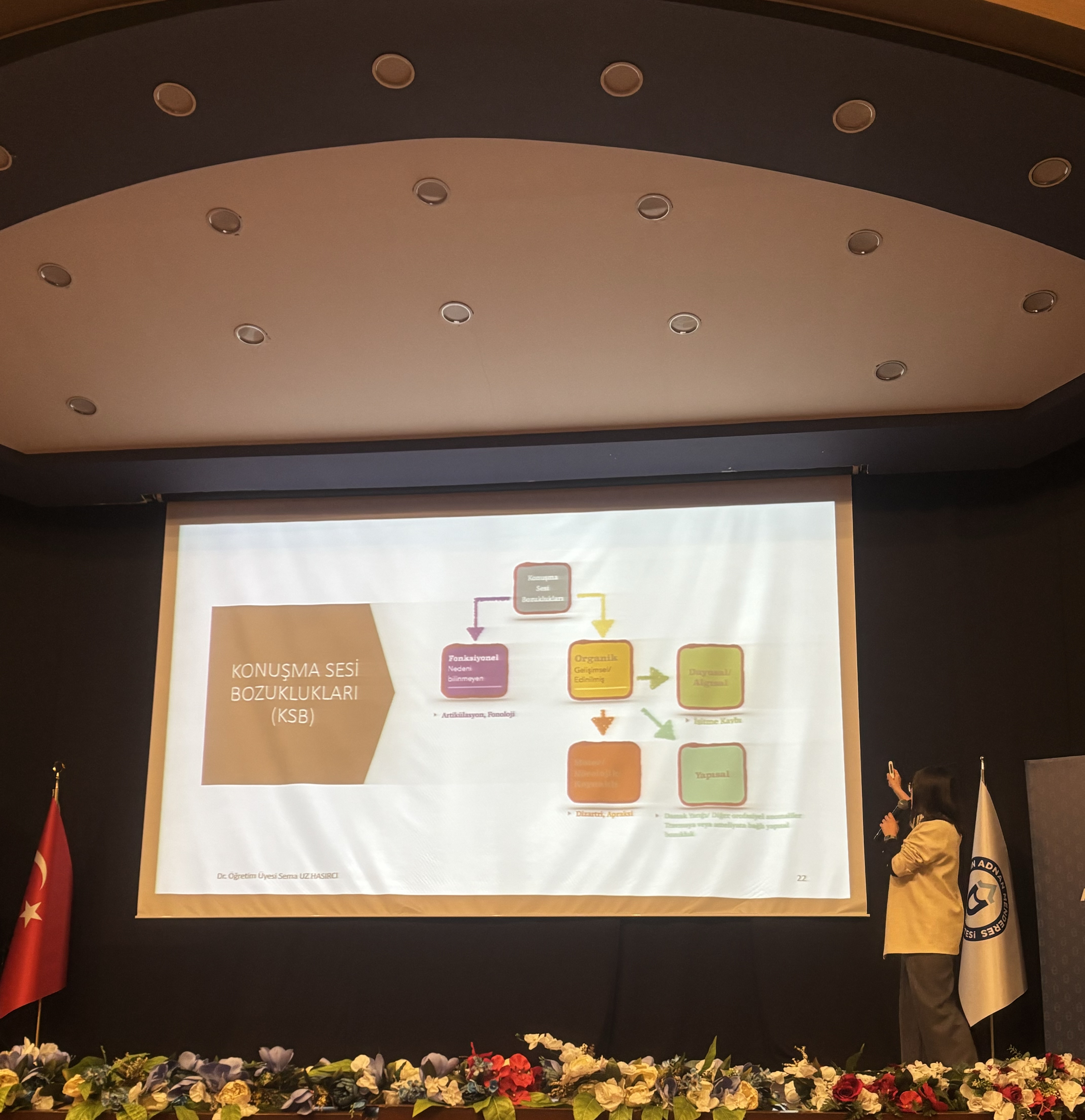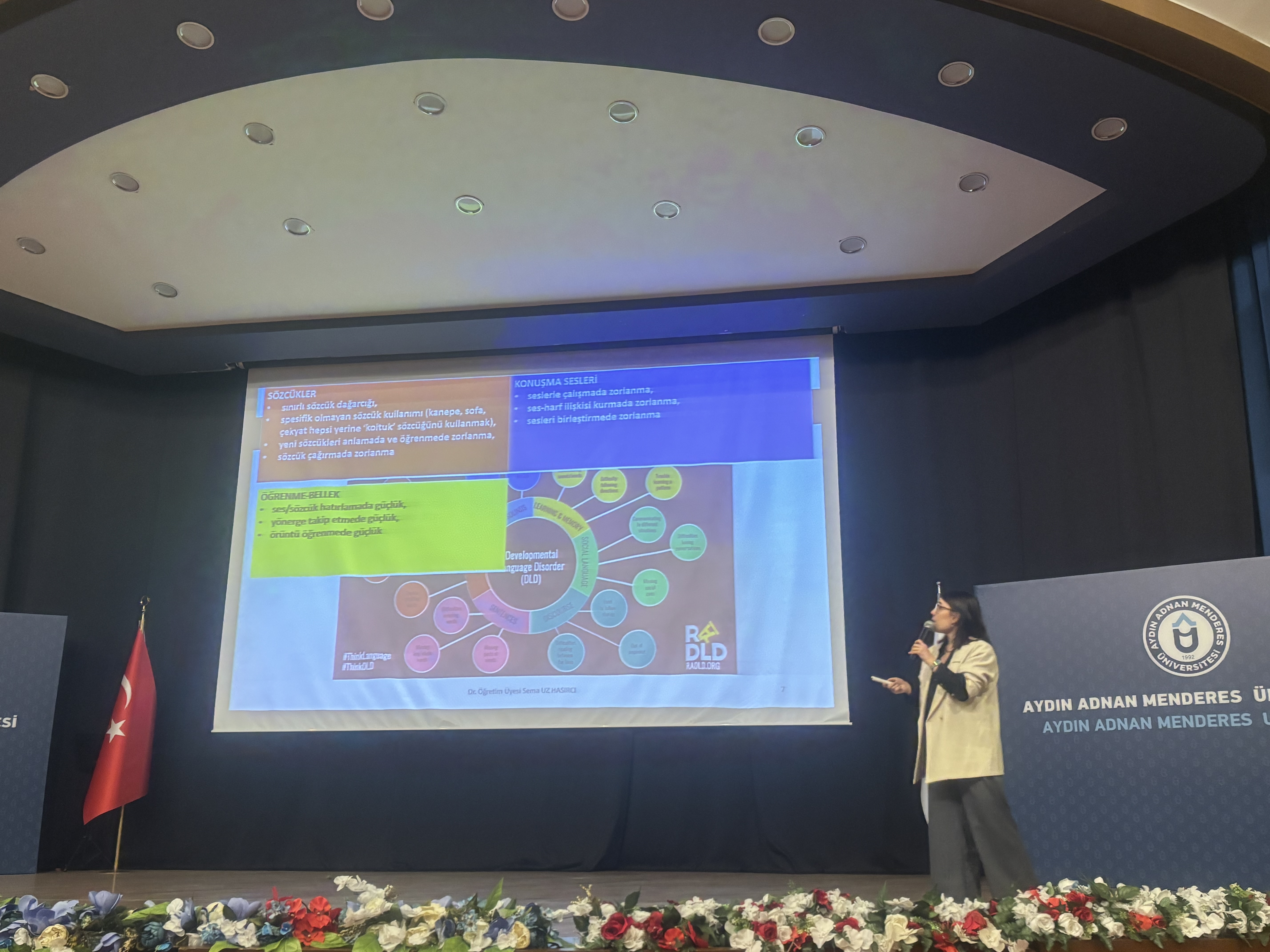 Etkinlikte, çocuklarda karşılaşılan dil ve konuÅŸma bozukluklarının erken tanısının ve doÄŸru müdahalenin önemi vurgulanarak, geliÅŸimsel dil bozuklukları, konuÅŸma bozuklukları ve kekemelik konuları ele alındı. Dr. Hasırcı, dil geliÅŸiminde yaÅŸanan gecikmelerin ve bozuklukların çocuÄŸun sosyal, duygusal ve akademik hayatına olan etkilerine deÄŸinirken, kekemelik ve diÄŸer konuÅŸma bozukluklarının etkili bir ÅŸekilde yönetilmesi için uygulanabilecek yöntemleri aktardı. Konuya iliÅŸkin bilimsel geliÅŸmeler ve terapötik yaklaşımlar üzerinde duran Dr. Hasırcı, özellikle dil ve konuÅŸma geliÅŸiminde erken müdahalenin saÄŸladığı avantajları örneklerle açıkladı.