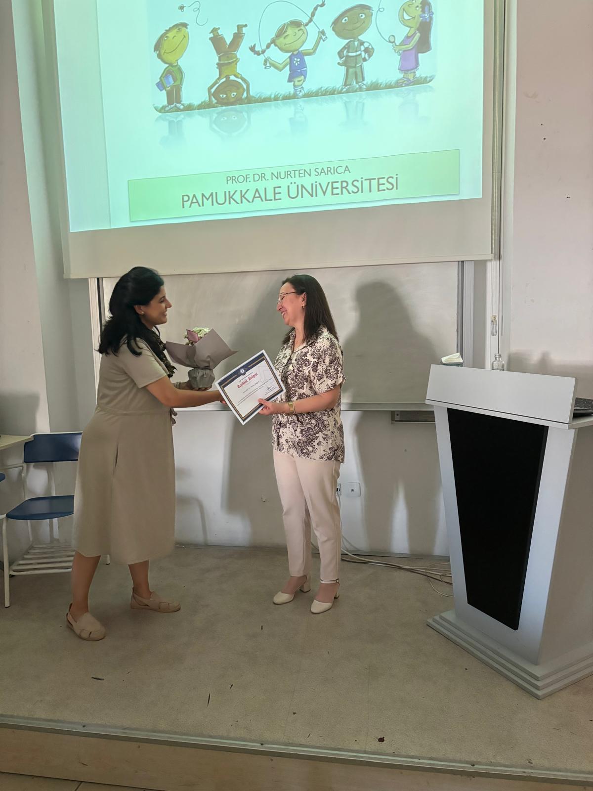 ÖÄŸrencilerin ve öÄŸretim üyelerinin katılım gösterdiÄŸi toplantıda, Pamukkale Üniversitesi İnsan ve Toplum Bilimleri Fakültesi Fransız Dili ve Edebiyatı Bölümünden Prof. Dr. Nurten Sarıca konuÅŸmacı olarak yer aldı. Konferans kapsamında, çocukların anadil edinim sürecini bilimsel ve pratik yönleriyle ele almak, bu alandaki güncel araÅŸtırmaları ve bulguları paylaÅŸmak ve katılımcılara yeni perspektifler kazandırmak amaçlandı. Konferansta, dil ediniminin önemi, çocukların dil geliÅŸim süreçleri ve bu süreçleri etkileyen faktörler detaylı bir ÅŸekilde tartışıldı. Etkinlik, katılımcıların sorularının cevaplandırılması ile sonlandırıldı.