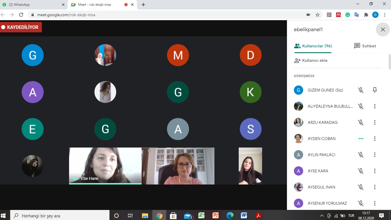Aydın Adnan Menderes Üniversitesi Sağlık Bilimleri Fakültesi Ebelik Bölümü öğrencilerine yönelik “google meet” üzerinden 08.12.2020 tarihinde yapılmış olan online panel-1’e ilişkin bilgiler aşağıda yer almaktadır.