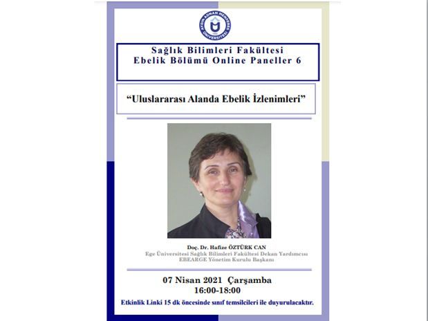 Üniversitemiz Sağlık Bilimleri Fakültesi Ebelik Bölümü tarafından düzenlenen online panellerin beşincisi olan “Uluslararası Alanda Ebelik İzlenimleri” paneli 7 Nisan 2021 tarihinde çevrimiçi olarak gerçekleşti.