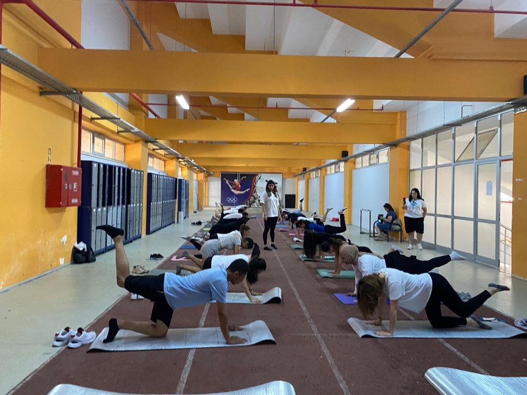 Katılımcıların, Fizyoterapist Büşra Domurcuk eşliğinde pilates yaptığı etkinliğe, Fizyoterapi ve Rehabilitasyon Bölüm Başkanı Doç. Dr. Gül Öznur Karabıçak, Dr. Öğretim üyesi Özge Ece Günaydın, Dr. Öğretim Üyesi Gürkan Günaydın, Öğretim Görevlisi Ahmet Gökkurt ve Öğretim Görevlisi Nazan Öztürk katıldı.