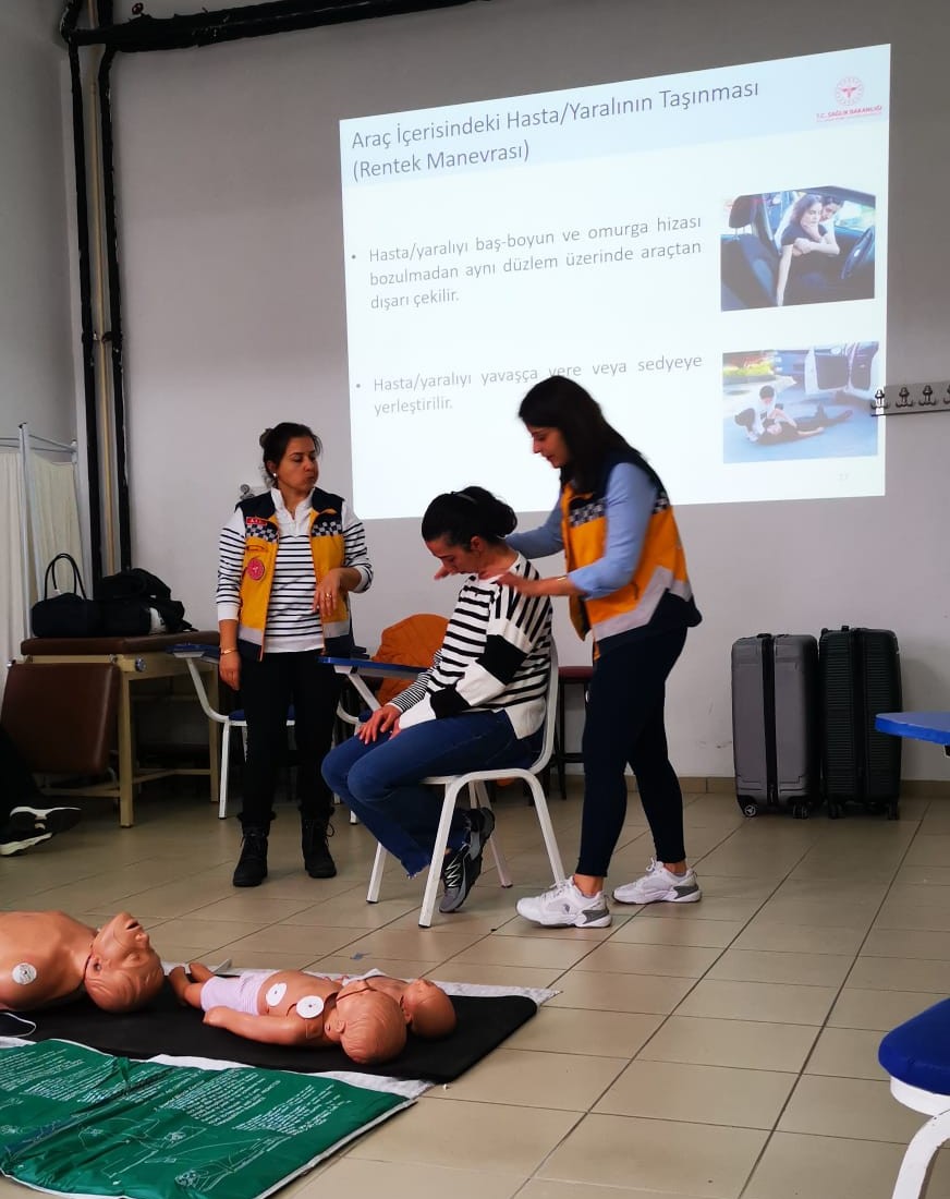 Program kapsamında katılımcılara; temel yaşam desteği, solunum yolu tıkanıklıklarında müdahale, kanama ve yaralanmalarda ilk yardım uygulamaları, kırık-çıkık ve burkulmalarda doğru yaklaşım ile acil durum yönetimi konularında kapsamlı bilgi aktarıldı. Uygulamalı oturumlarda personel, maketler üzerinde kalp masajı ve suni solunum tekniklerini birebir deneyimleme fırsatı buldu.
