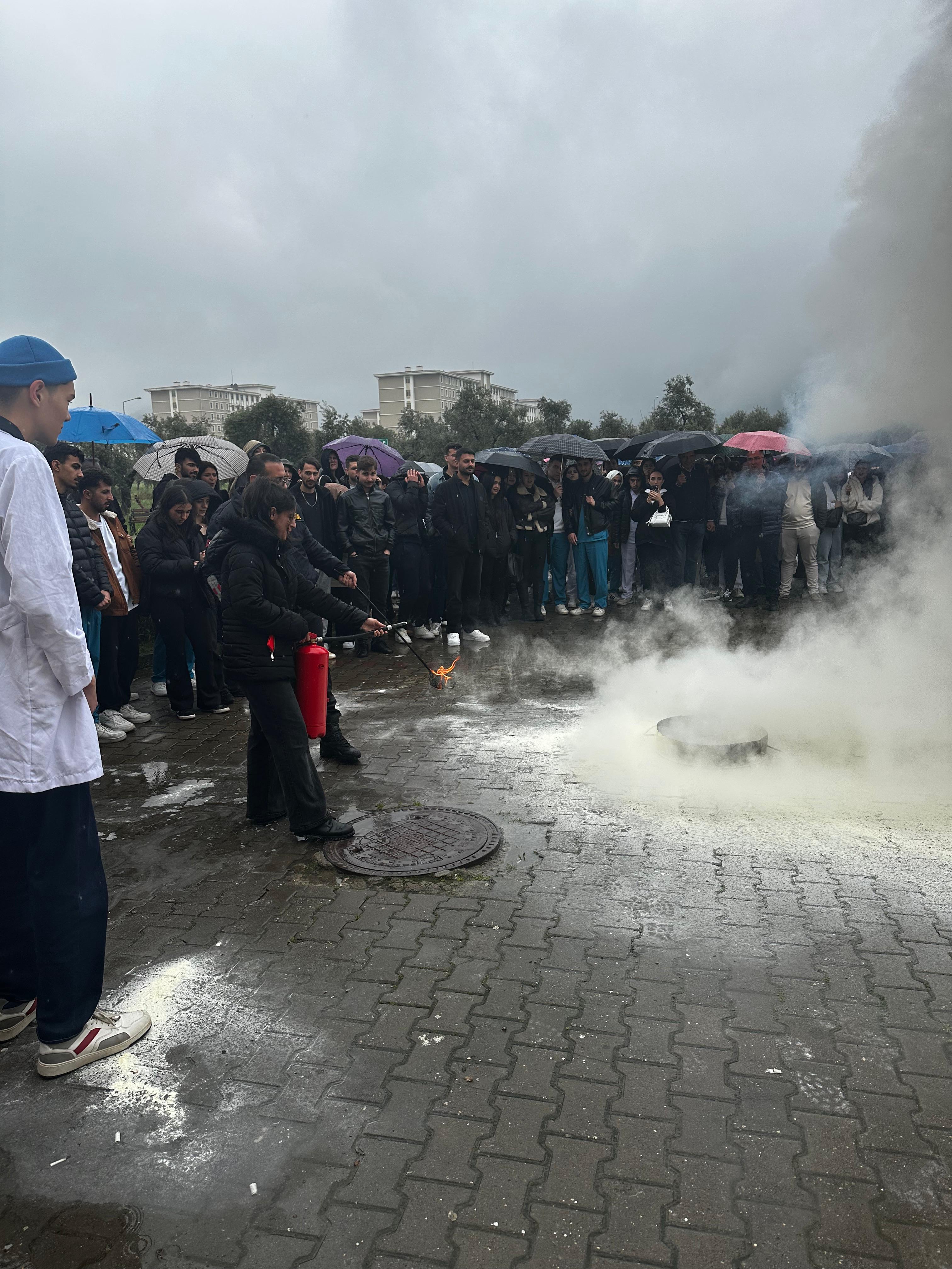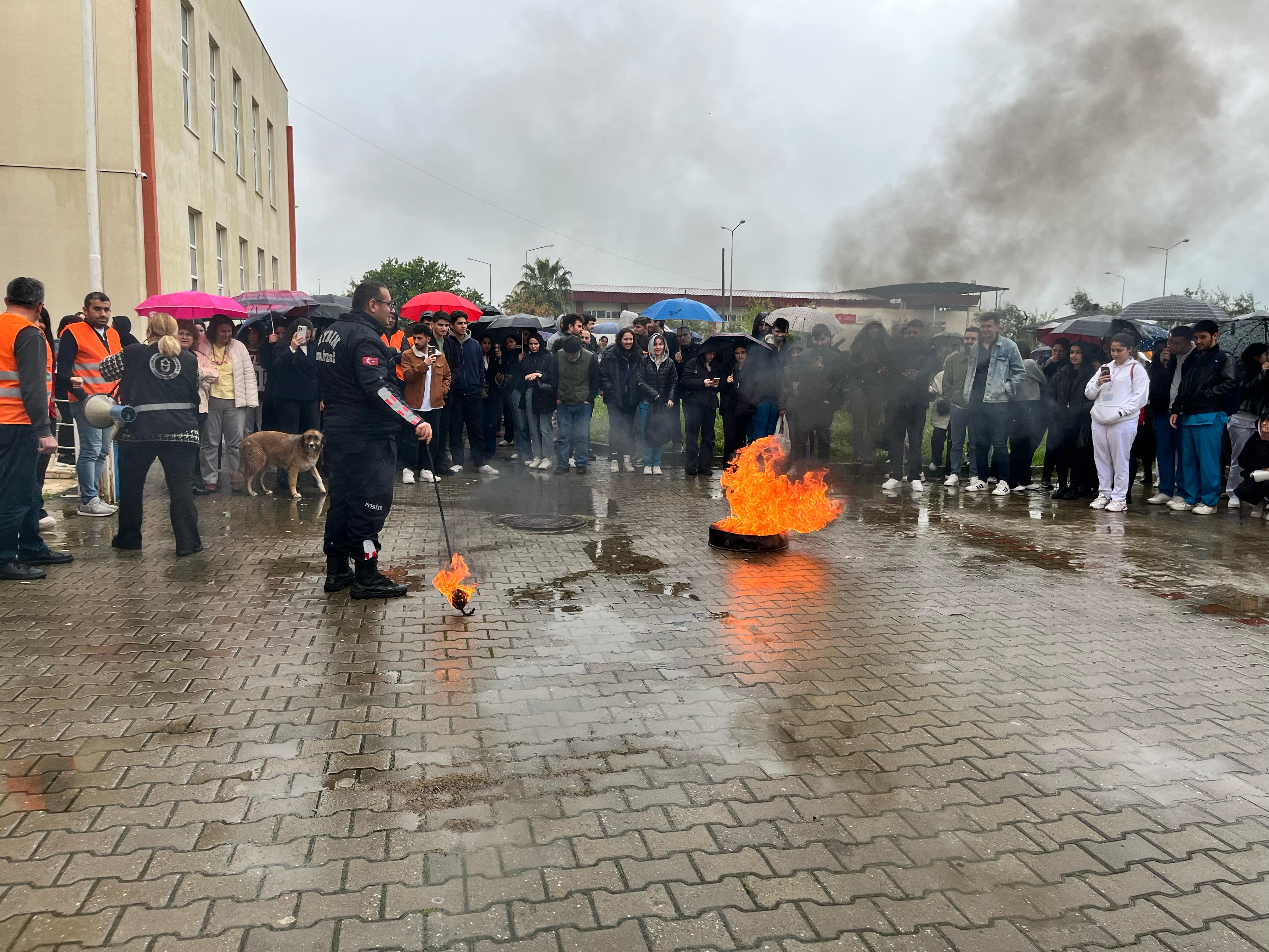 Üniversitemizde güvenli bir eğitim ortamı oluşturulmasına katkı sağlamayı ve öğrencilerin olası acil durumlarla başa çıkma becerilerini geliştirmeyi amaçlayan etkinlikte Tayfun Küçükçav, yangın güvenliği, yangın anında yapılması gerekenler ve yangın tatbikatı prosedürlerine ilişkin kapsamlı teorik ve uygulamalı bilgiler aktardı.