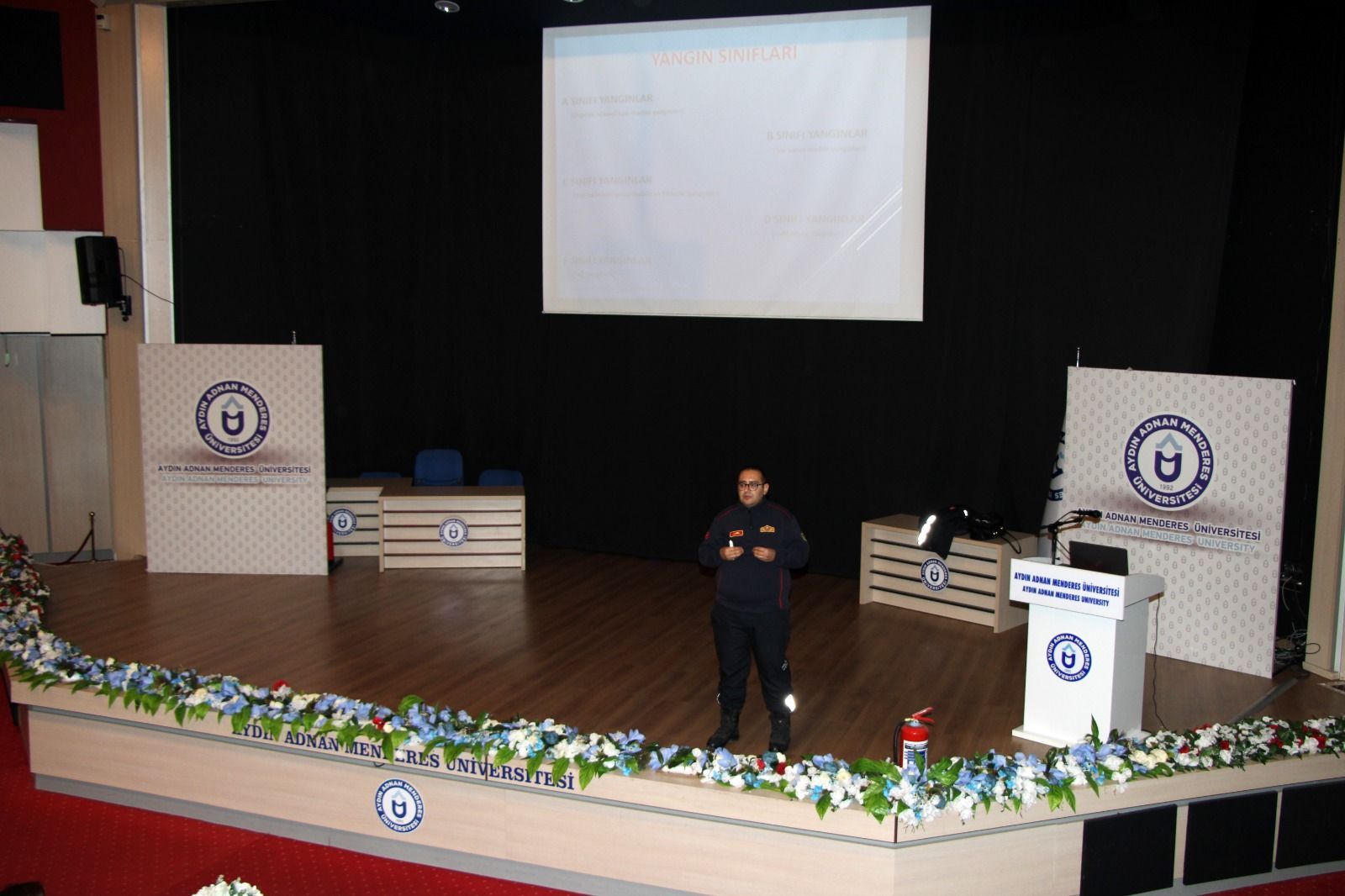 fet ve Acil Durum Uygulama ve Araştırma Merkezi Müdür Yardımcısı ve Sivil Savunma Uzmanı Gülay Kandemir’in koordinesinde düzenlenen eğitime, Aydın Büyükşehir Belediyesi İtfaiye Daire Başkanlığı Yangın Eğitmeni Tayfun Küçükçav konuşmacı olarak katıldı.