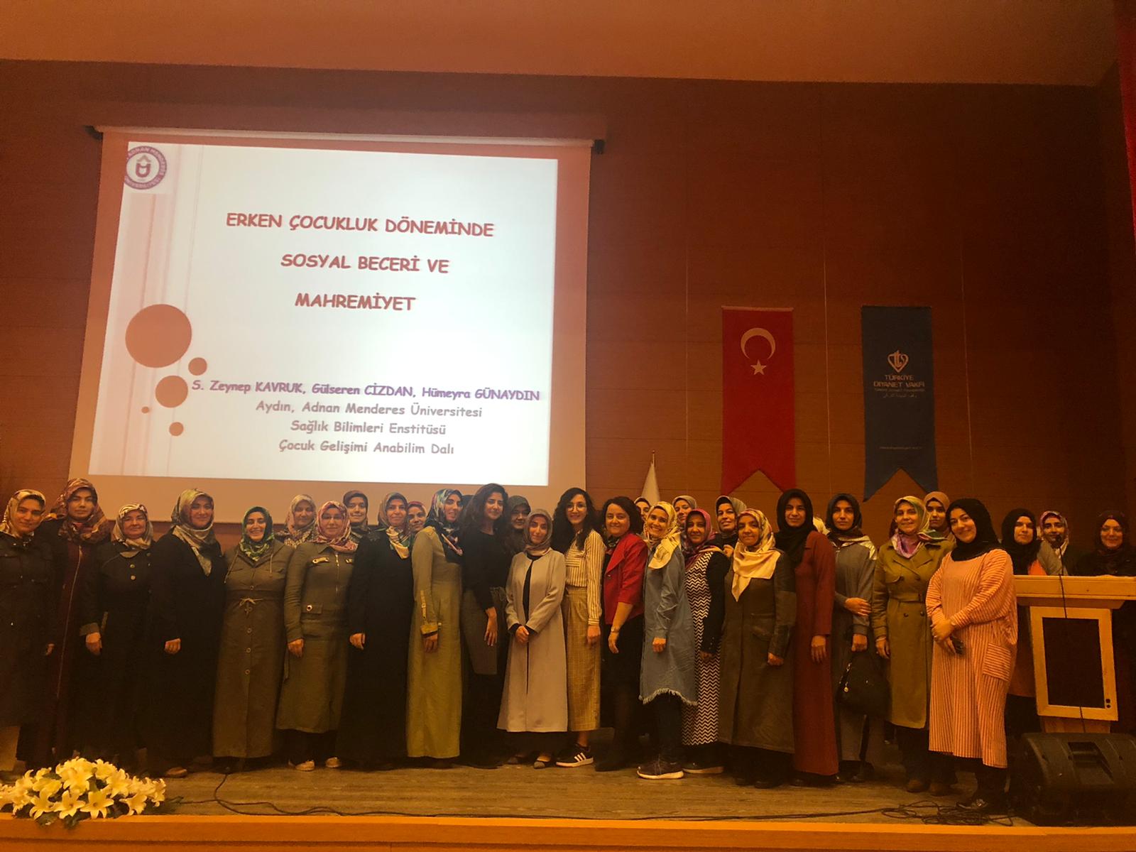 18.11.2019 tarihinde 09:30-11:30 saatleri arasında Aydın İl Müftülüğü’nün talebi üzerine Çocuk Kur’an Kursu Eğitimcilerine yönelik “Erken Çocukluk Döneminde Sosyal Beceriler ve Mahremiyet” konulu eğitim verilmiştir. Eğitim, Fakültemiz Çocuk Gelişimi Bölümü Öğretim Üyesi Doç. Dr. Selvinaz SAÇAN rehberliğinde Yüksek Lisans öğrencilerimiz; S. Zeynep KAVRUK, Gülseren CİZDAN ve Hümeyra GÜNAYDIN tarafından yapılmıştır.