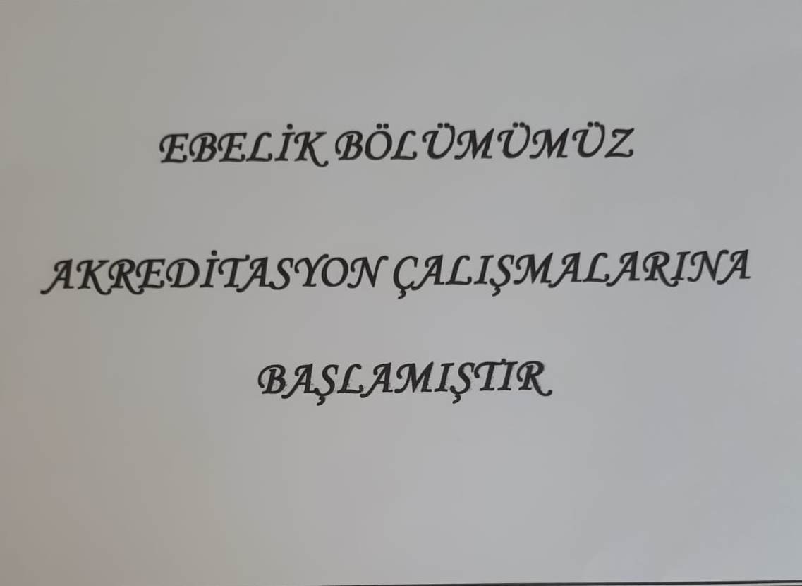 Ebelik Bölüm BaÅŸkanı Prof.Dr.Aslıhan BÜYÜKÖZTÜRK KARUL tarafından 26.12.2019 tarihinde yapılan bölüm kurulu toplantısında Lisans Programımızın akreditasyon çalışmalarına baÅŸlanmıştır.