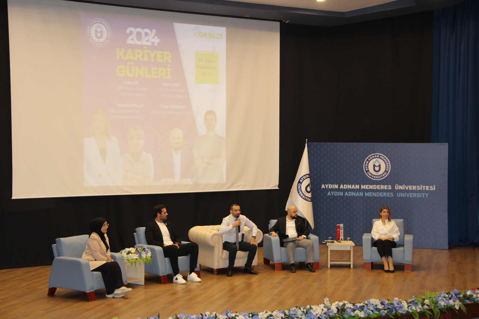 Sağlık Bilimleri Fakültesi Çocuk Gelişimi Bölümü mezunlarından Azize ARI ÖZCAN ve Ebelik Bölümü mezunlarından Tülay DOĞRUSOY, 22-24 Ekim 2024 tarihlerinde gerçekleştirilen ADÜ Kariyer Günlerinde üniversitemiz mezunları ile öğrenim görmeye devam eden öğrencileri bir araya getirmeyi amaçlayan “ADÜ Mezunları” oturumunda konuştu.