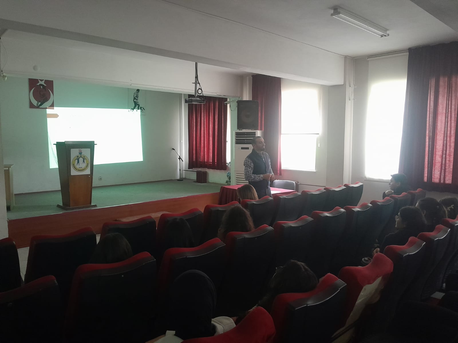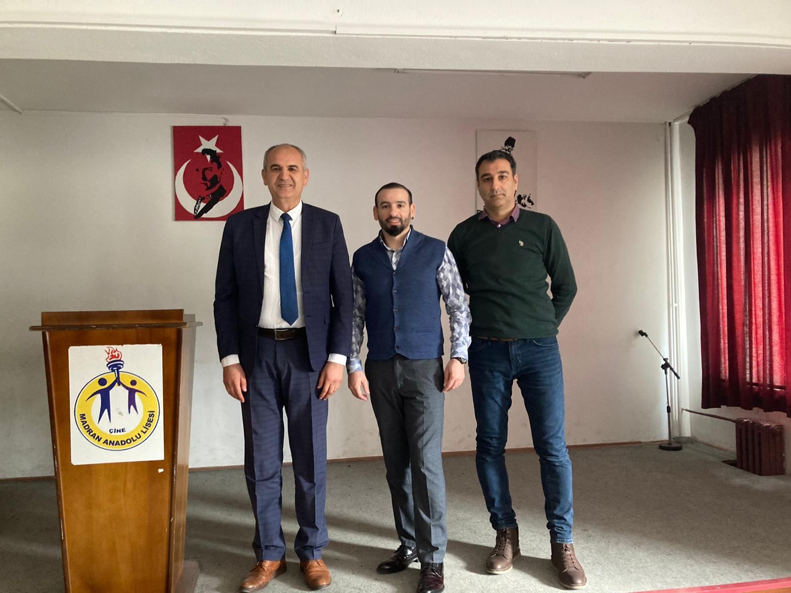 Aydın Adnan Menderes Üniversitesi Afet ve Acil Durum Uygulama ve AraÅŸtırma Merkezi’nin “Liselerde Bilim Uygulamaları Projesi”nin ilk aÅŸaması olan “Acil Durumlar ve Afet Yönetimine İliÅŸkin EÄŸitimler” kapsamında SaÄŸlık Bilimleri Fakültesi Sosyal Hizmet Bölümü Dr. ÖÄŸretim Üyesi Salim KAYA tarafından Aydın Çine Madran Anadolu Lise’sinde Afet Psikolojisi ve Sosyolojisi konulu eÄŸitim verilmiÅŸtir.