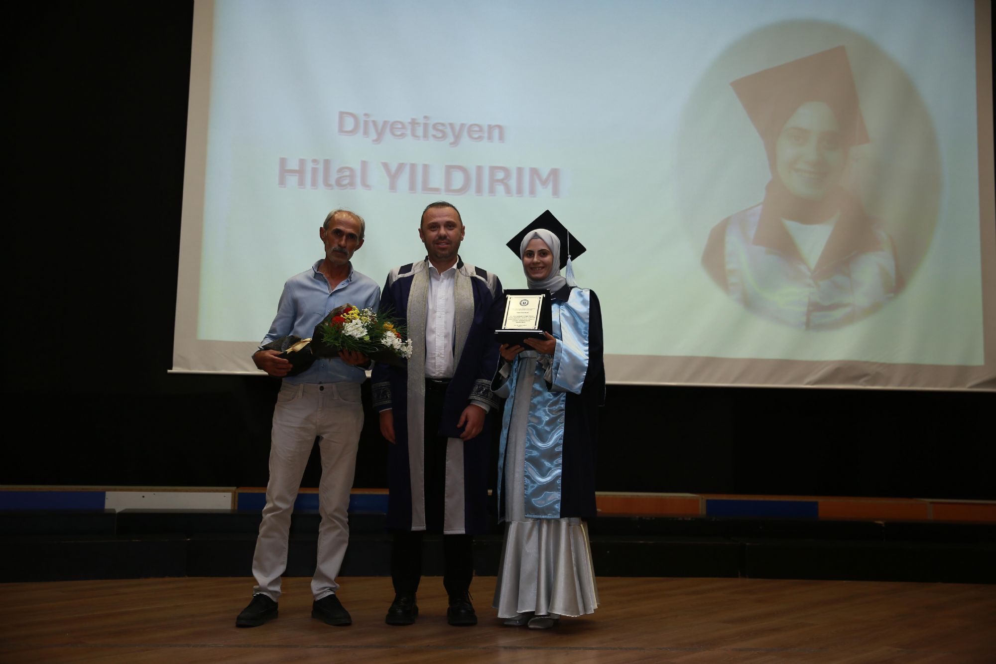 Tüm mezun öÄŸrencilere mezuniyet belgeleri verilmesinin ardından Çocuk GeliÅŸim Andı, Ebelik Andı, Beslenme ve Diyetetik Andı’nın okunmasının ardından mezun öÄŸrencilerin keplerini atması ile tören sona erdi.