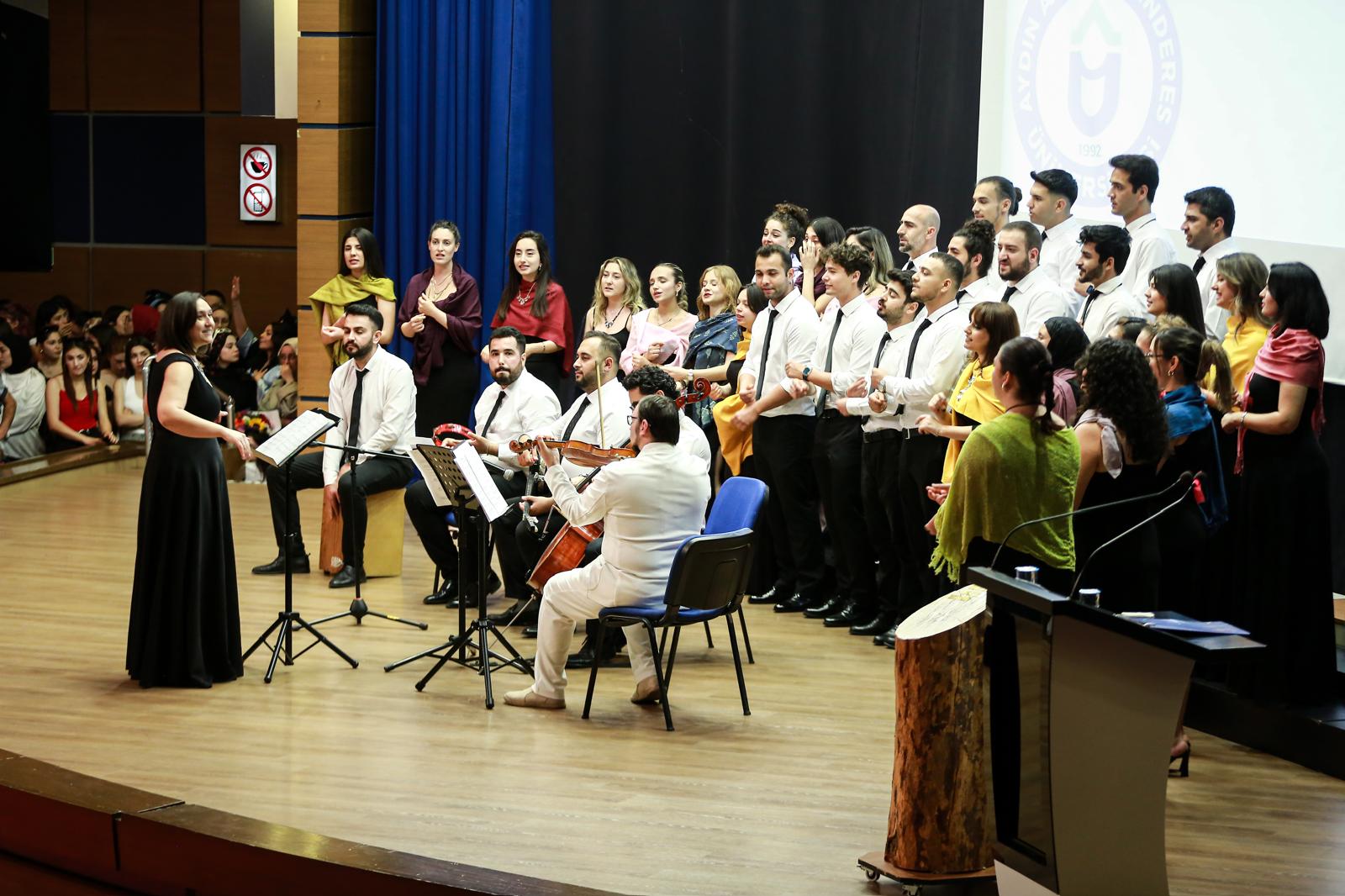 Saygı DuruÅŸu ve İstiklâl Marşı’nın okunmasının ardından Üniversitemiz Çok Sesli Korosu’nun müzik dinletisi gerçekleÅŸti. Törenin açış konuÅŸmasını yapan SaÄŸlık Bilimleri Fakültesi Dekan V. Prof. Dr. Ayden Çoban, öÄŸretim elemanlarının emeklerine teÅŸekkür ederek, “Sevgili mezunlarımız; sizler yaÅŸamı, umudu ve geleceÄŸi ÅŸekillendiren ellerin sahibisiniz. SaÄŸlık ordusunun birer neferi olarak mesleklerinizi etik ilke ve sorumluluklarla icra edeceÄŸinize olan inancım tamdır. Yolunuz açık, bahtınız aydınlık olsun.” ifadelerini kullandı.