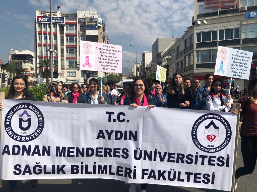 Düzenlenen yürüyüÅŸe Aydın İl SaÄŸlık MüdürlüÄŸü, Efeler İlçe SaÄŸlık MüdürlüÄŸü, Merkez Hastaneler, Aydın Adnan Menderes Üniversitesi SaÄŸlık Bilimleri ve HemÅŸirelik Fakülteleri katılım göstermiÅŸtir. Halkımız kanserle mücadele kampanyasına yoÄŸun ilgi göstermiÅŸtir. YürüyüÅŸ Aydın Kent Meydanında İl SaÄŸlık Müdürü Dr. Fevzi YAVUZYILMAZ’ın konuÅŸması ve dilek balonlarının uçurulması ile son bulmuÅŸtur.