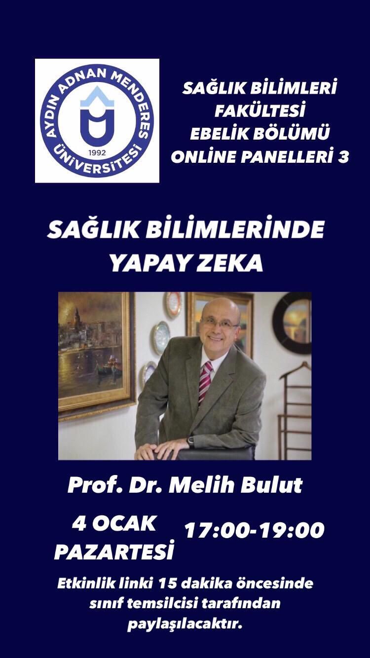 SaÄŸlık Bilimleri Fakültesi Ebelik Bölümü tarafından düzenlenen ebelik öÄŸrenci panellerinin üçüncüsü "SaÄŸlık Bilimlerinde Yapay Zeka" paneli 4 Ocak 2021 tarihinde saat 17.00 'da gerçekleÅŸecektir. Etkinlik linki 15 dk öncesinden öÄŸrenci temsilcileri ile paylaşılacaktır.