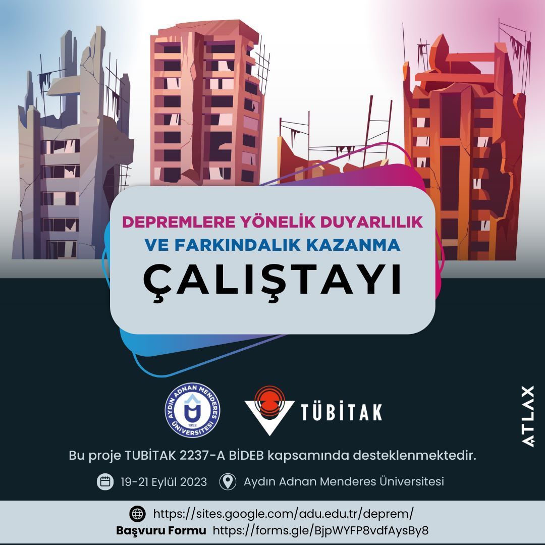 Sağlık Bilimleri Fakültesi Sosyal Hizmet Bölümü Dr. Öğretim Üyesi Salim KAYA’nın yürüttüğü TÜBİTAK tarafından desteklenen Depremlere Yönelik Duyarlılık ve Farkındalık Kazanma Çalıştayı için öğrenci başvuruları alınmaya başlanmıştır. 8 farklı üniversiteden alanında uzman 13 akademisyen tarafından eğitim verilecek olan çalıştay, 19-21 Eylül 2023 tarihlerinde Aydın Adnan Menderes Üniversitesi, Atatürk Kongre Merkezi’nde gerçekleştirilecektir.