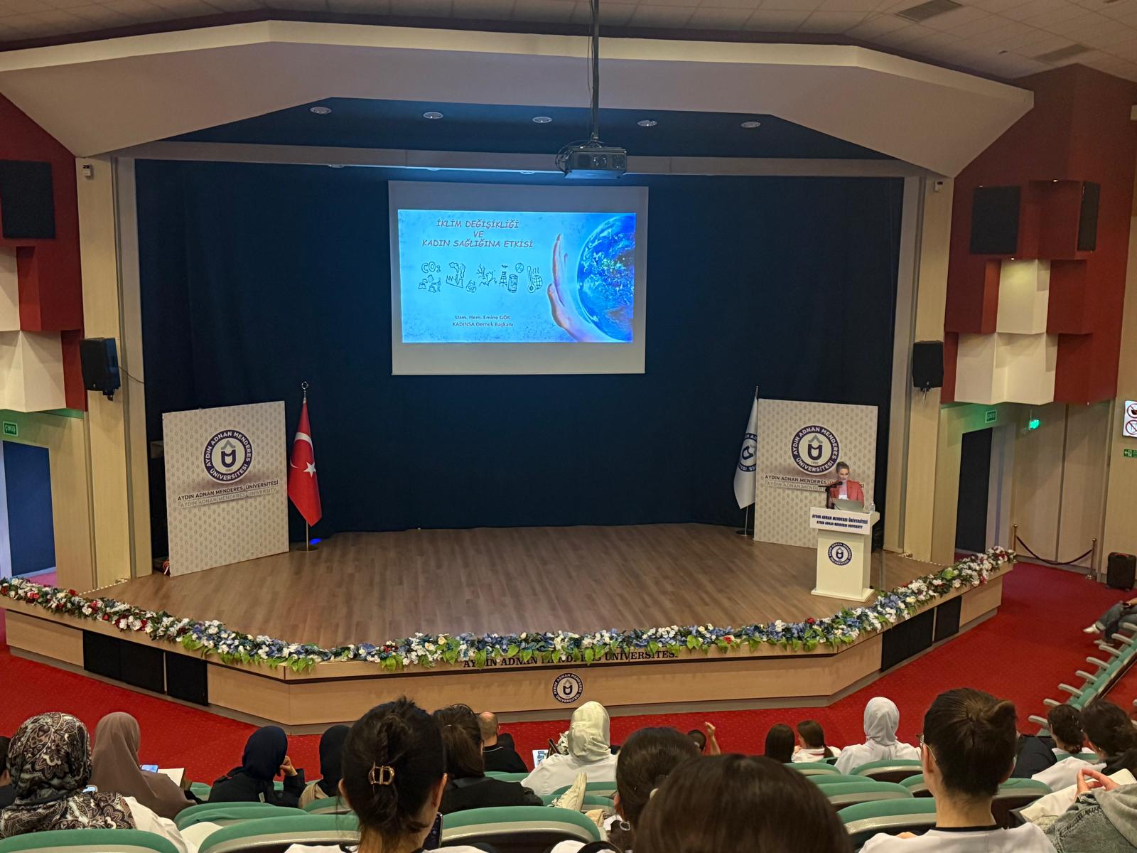 Seminere konuşmacı olarak, Kalkınmada Kadının Sağlık Hakkı (Kadınsa) Derneği Başkanı ve Uzman Hemşire Emine Gök katıldı. Emine Gök, iklim değişikliğinin kadın sağlığı üzerindeki etkilerine dikkat çekerek; özellikle gebelik, doğum sonrası dönem, üreme sağlığı ve menopoz sürecinde karşılaşılan fiziksel ve ruhsal sağlık sorunları hakkında kapsamlı bilgiler paylaştı.