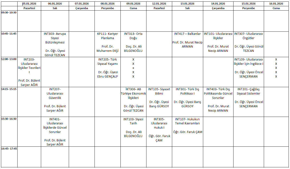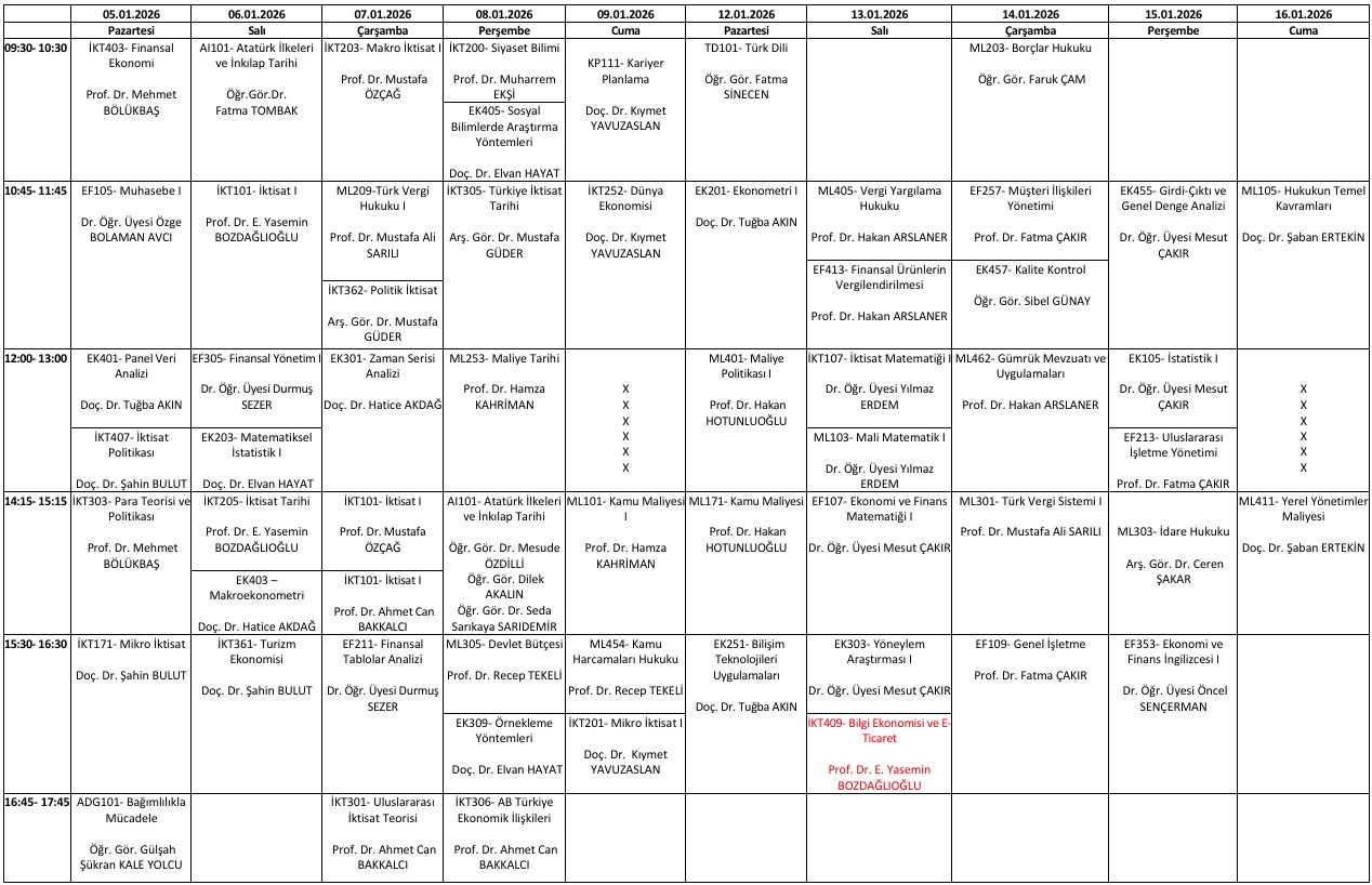 2025/2026 Eğitim-Öğretim Yılı Güz Yarıyılı Final Sınav Programı (TASLAK)
