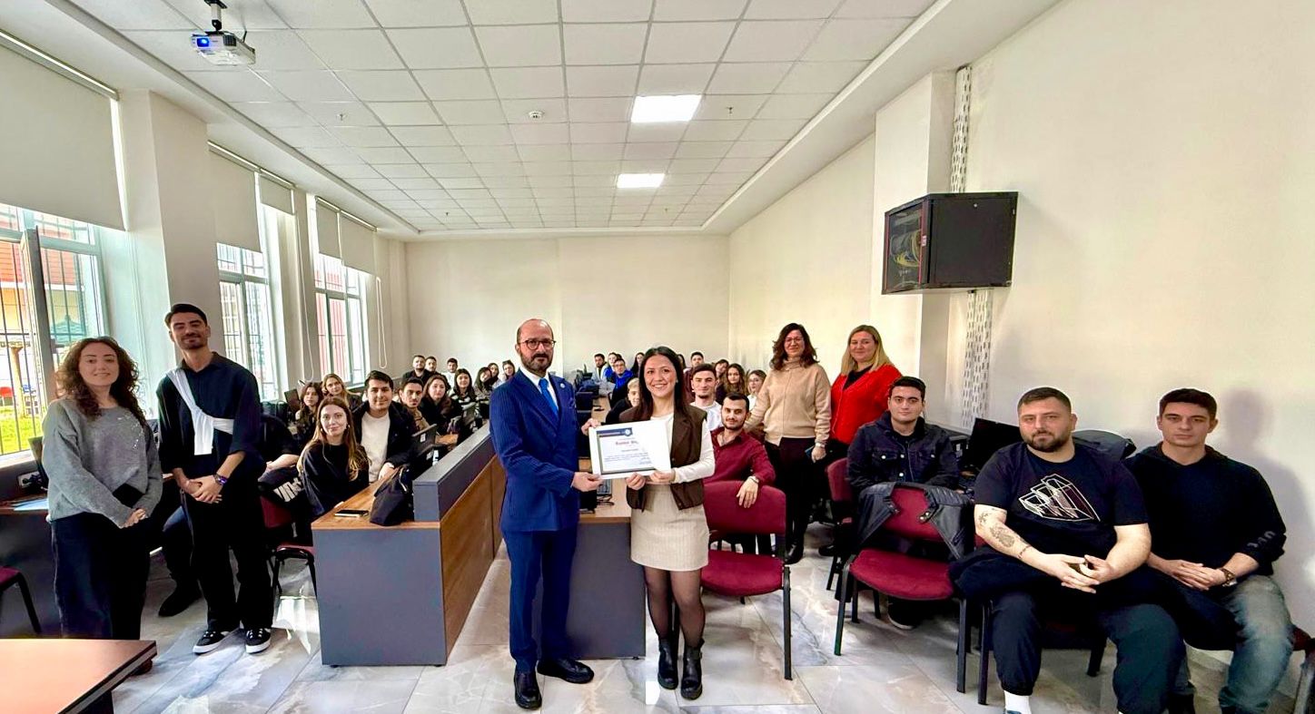 Etkinlik sonunda teÅŸekkür belgeleri, Dekanımız Prof. Dr. Muharrem EkÅŸi tarafından takdim edilmiÅŸtir. Dekanlık yönetimi olarak öÄŸrencilerimizin çok yönlü geliÅŸimini desteklemeye yönelik çalışmaların önemi vurgulanmıştır.