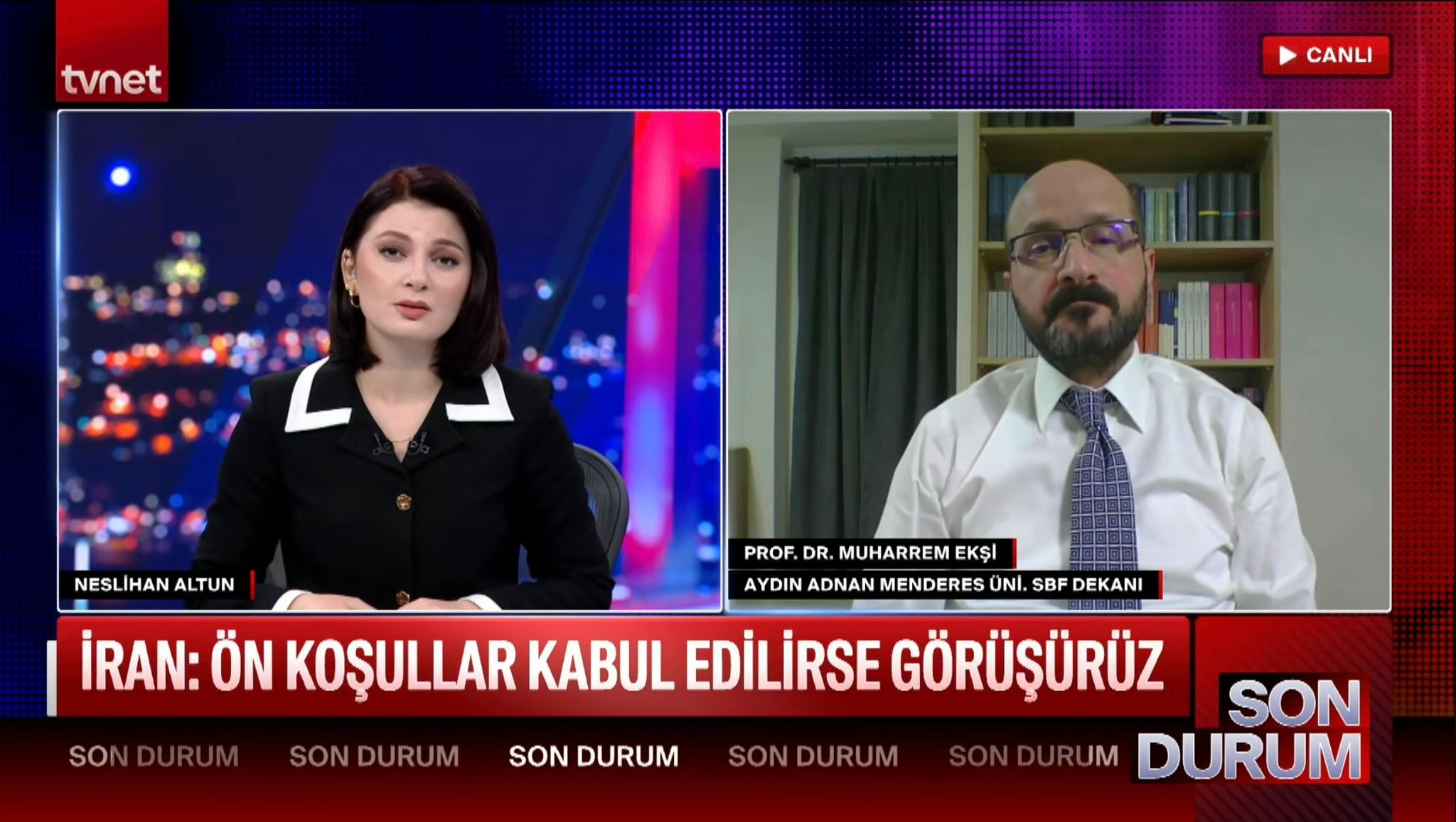 Aydın Adnan Menderes Üniversitesi Siyasal Bilgiler Fakültesi Dekanı Prof. Dr. Muharrem Ekşi, Tvnet ekranlarında İran Gündemine İlişkin Değerlendirmelerde Bulundu