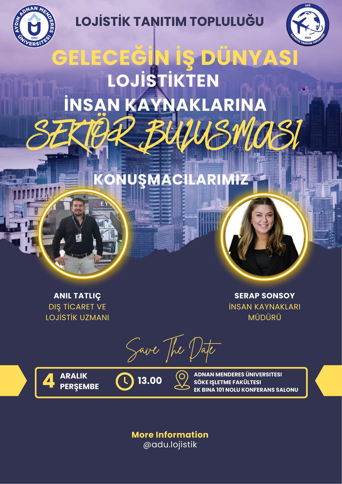 Sektörün geleceÄŸine ışık tutan, öÄŸrencilerimizin hem lojistik hem de dış ticaret alanında güncel geliÅŸmeleri anlamasını saÄŸlayarak kariyer planlamalarına önemli katkıda bulunan etkinlik için Lojistik Tanıtım TopluluÄŸu'na, katılım gösteren akademik personelimize, Sayın Anıl TATLIÇ'a ve ilgi gösteren öÄŸrencilerimize teÅŸekkür ederiz.