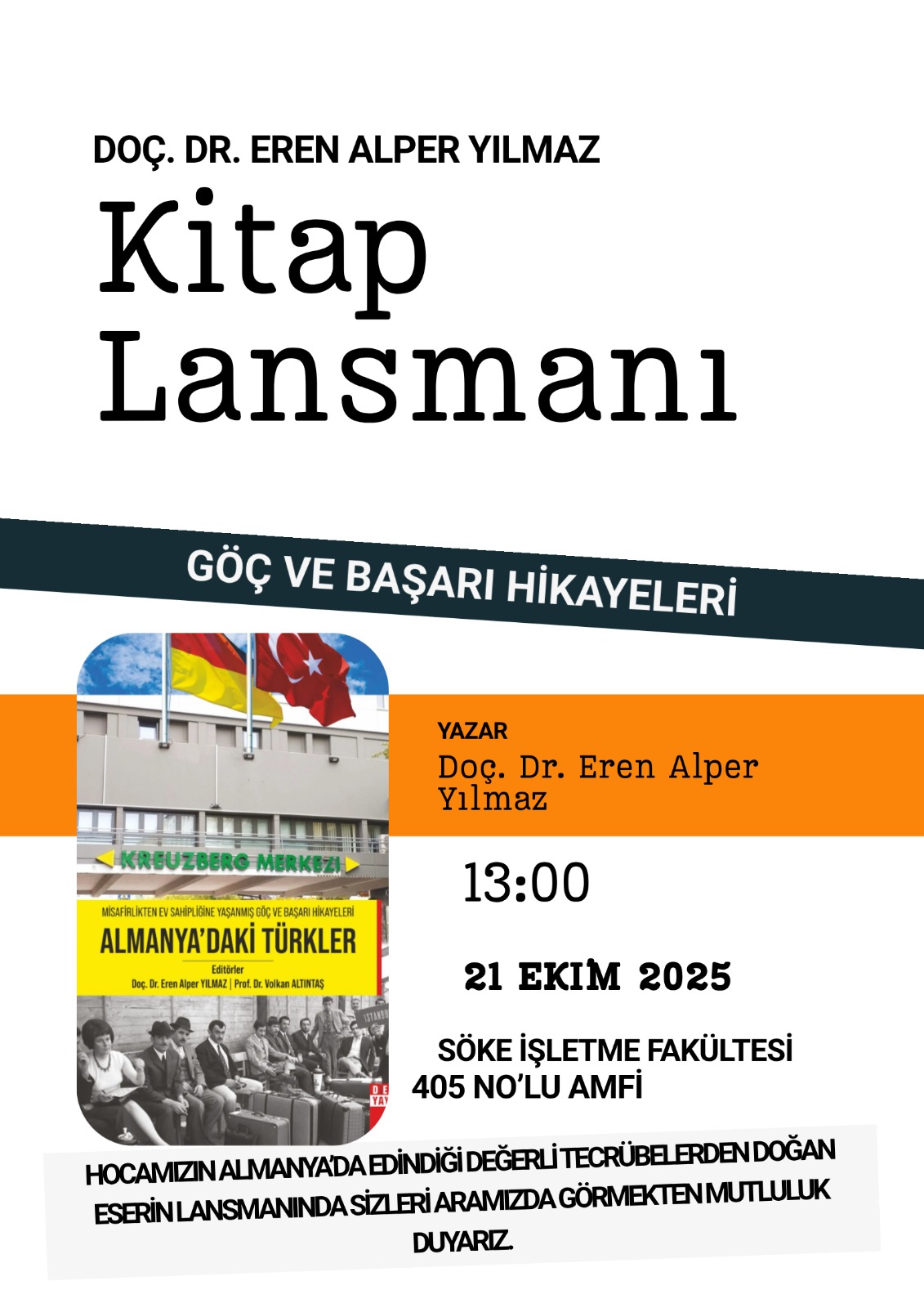 Fakültemiz Kamu Yönetimi bölümü öÄŸretim üyesi Doç. Dr. Eren Alper YILMAZ'ın editörlerinden biri olduÄŸu "Misafirlikten Ev SahipliÄŸine YaÅŸanmış Göç ve BaÅŸarı Hikayeleri: Almanya'daki Türkler" isimli kitabın tanıtımı 21 Ekim Salı günü saat 13.30'da C blok 405 nolu amfide gerçekleÅŸtirildi. Almanya'daki Türk toplumunun hem geçmiÅŸten günümüze dek yaÅŸadığı zorlukları hem de örülen duvarları bir bir yıkarak kazandığı baÅŸarı hikâyelerini ele alan, sıfır noktasından baÅŸlayıp zirveye ulaÅŸan, yaÅŸadıkları zorluklar karşısında mücadele etmekten yılmayıp her daim çalışan, ayrımcılığa maruz kalmalarına raÄŸmen motivasyonlarını kaybetmeden geleceklerini inÅŸa eden göçmenlerin öyküsünü ele alan kitabın tanıtımında Doç. Dr. Eren Alper YILMAZ kitaba, yazım sürecine ve Almanya tecrübesine dair bir sunum gerçekleÅŸtirdi. Sunumun ardından Dr. ÖÄŸr. Üye. Ali Arda YÜCEYILMAZ moderatörlüÄŸünde soru-cevap kısmına geçildi. Kamu Yönetimi bölümünün gerçekleÅŸtirdiÄŸi etkinlik toplu fotoÄŸraf çekimiyle noktalandı. Organizyan için Kamu Yönetimi bölümüne, kitabı ve sunumu için Doç. Dr. Eren Alper YILMAZ'a ve katılımlarından dolayı öÄŸrencilerimize teÅŸekkür ederiz.