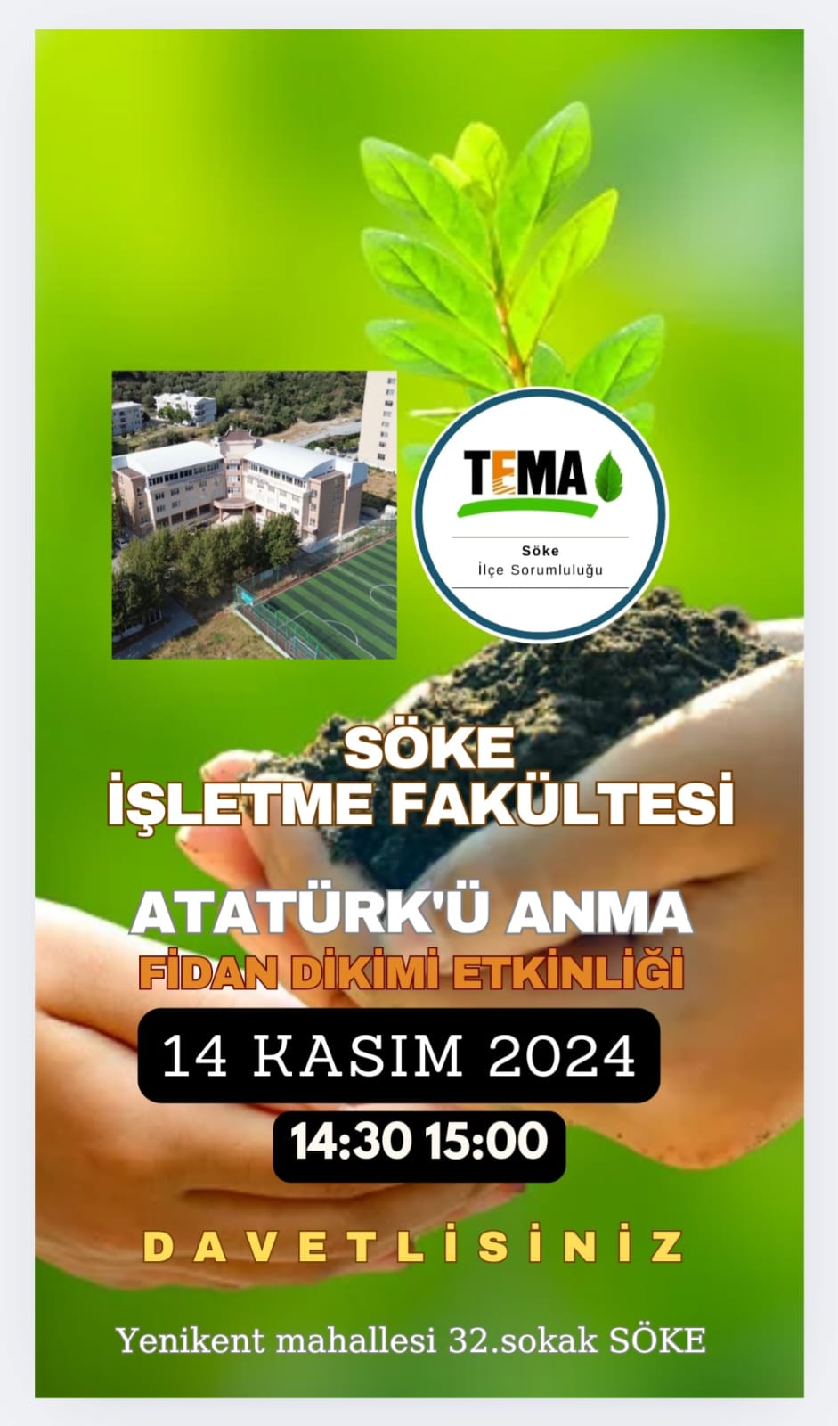 TEMA Vakfı' nın Fakültemizde 13 Kasım Çarşamba günü saat 11.30' da C Blok 405 nolu sınıfta düzenleyeceği sunuma ve 14 Kasım Perşembe günü saat 14.30' da gerçekleştireceği Fidan Dikimi Etkinliğine tüm öğrencilerimiz ve personelimiz davetlidir.