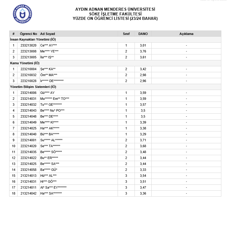 YÜZDE ON ÖĞRENCİ LİSTESİ (23/24 BAHAR)