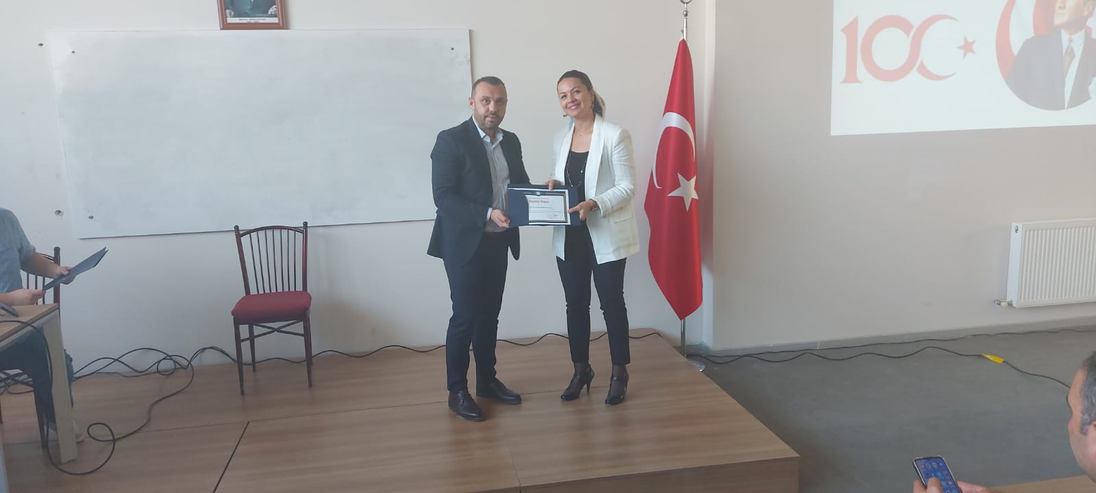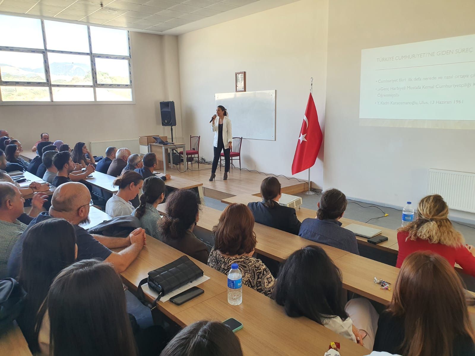 24.10.2023 tarihinde Söke İşletme Fakültesi’nde Söke’de Cumhuriyet’in 100. Yılı Konferansı gerçekleÅŸtirilmiÅŸtir. Rektör Yardımcısı ve İşletme Fakültesi Dekan Vekili Prof. Dr. Cemal İYEM’in ve Söke İşletme Fakültesi Dekan Yardımcısı Prof. Dr. Mustafa KESEN’in hazır bulunduÄŸu konferansa katılım oldukça yoÄŸun olmuÅŸtur. Programda açılış sonrasında Cumhuriyetimizin kurucusu büyük önder Gazi Mustafa Kemal ATATÜRK, silah arkadaÅŸları ve ebediyete intikal etmiÅŸ tüm ÅŸehitlerimiz için 1 dakikalık saygı duruÅŸunda bulunulmuÅŸ ve İstiklal Marşı coÅŸkuyla okunmuÅŸtur. Programımız ÖÄŸr.Gör. Dr. Banu BERBER BABALIK’ın “Cumhuriyet ve Modern Türkiye’nin DoÄŸuÅŸu”, Dr. ÖÄŸr. Üyesi Belgin TARHAN’ın “Bir Özgürlük Felsefesi Olarak Cumhuriyet” ve son olarak Dr. ÖÄŸr. Üyesi Ahmet Bora TARHAN’ın “KuruluÅŸ, ModernleÅŸme ve Demokrasi” temalarındaki aydınlatıcı konuÅŸmalarıyla devam etmiÅŸtir. Konferansımız, kapanış konuÅŸmasını gerçekleÅŸtiren İşletme Fakültesi Dekan Vekili Prof. Dr. Cemal İYEM’in konuÅŸmacılarımıza teÅŸekkür belgelerini takdim etmesiyle son bulmuÅŸtur. CoÅŸkuyla noktalanan 100.yıl etkinliÄŸimiz çıkışında, öÄŸrencilerimize "ADÜ'de Bereket Var" projesi kapsamında çorba ikramı gerçekleÅŸtirilmiÅŸtir." Katkı ve katılım saÄŸlayan tüm akademik personelimize ve öÄŸrencilerimize teÅŸekkür ederiz.