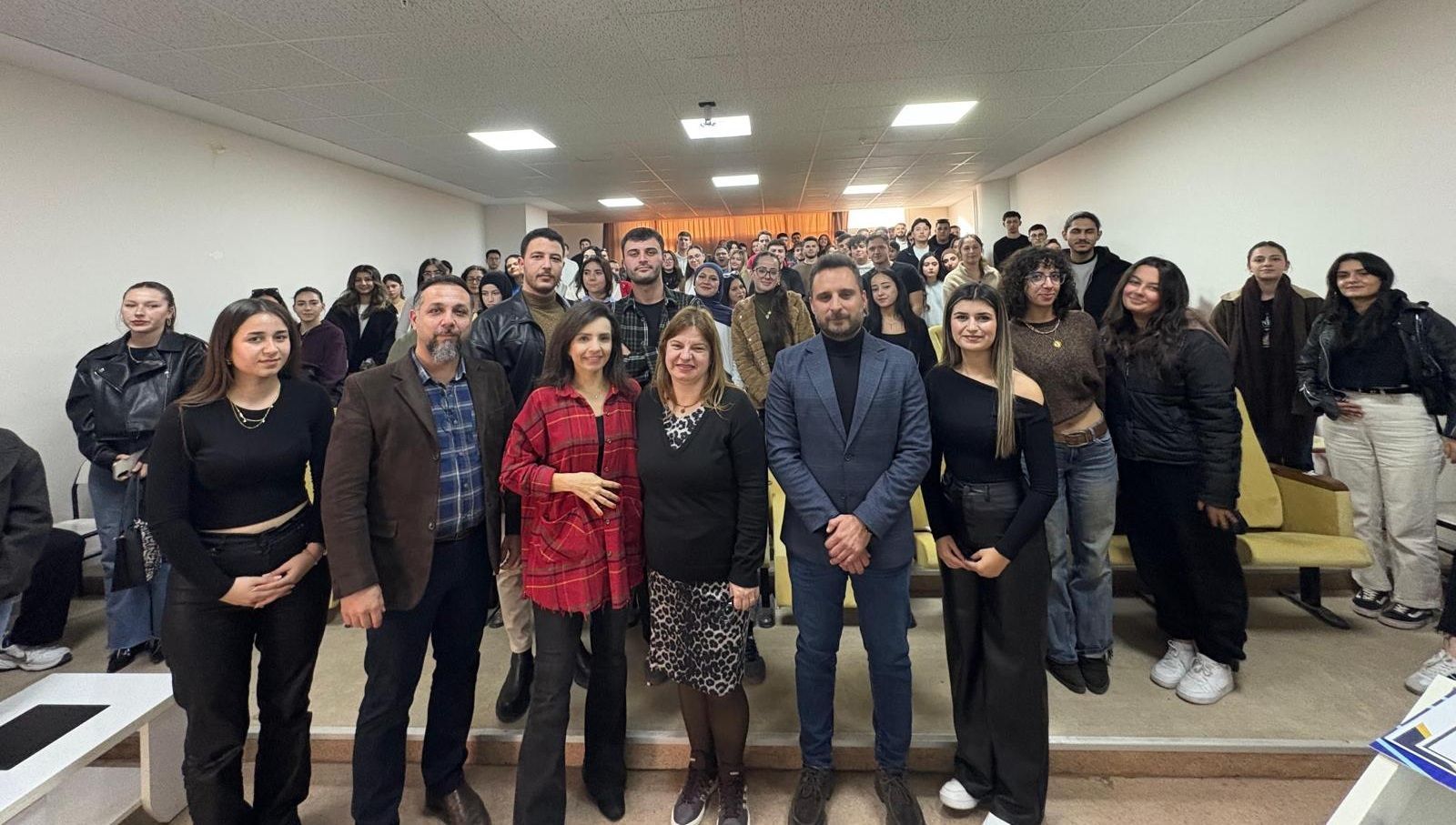 Fakültemiz Denizcilik Topluluğu 16 Aralık 2025 Salı günü saat 15.00'te C blok Konferans Salonu'nda Kuşadası Ege Port Operasyon Müdürü Sayın Uğur KUZAKÇI’yı ağırladı. Denizcilik ve liman operasyonları alanındaki değerli bilgi, tecrübe ve sektörel paylaşımlarıyla öğrencilerimiz için son derece verimli ve ilham verici bir konferans gerçekleştirildi. Seminere Fakültemiz Dekan Yardımcısı Doç. Dr. Beyza ERER, Topluluk Danışmanı Dr. Öğr. Üye. Yusuf Ziya ŞİPAL ve Lojistik Yönetimi bölümü mensubu Dr. Öğr. Üye. Güneş Açelya SİPAHİ de katıldılar. Sayın Uğur KUZAKÇI'ya bilgi ve deneyimlerini içtenlikle paylaştıkları, öğrencilerimizin mesleki gelişimine katkı sağladıkları için, öğrencilerimize ve akademik personelimize katılımları için teşekkür ederiz.