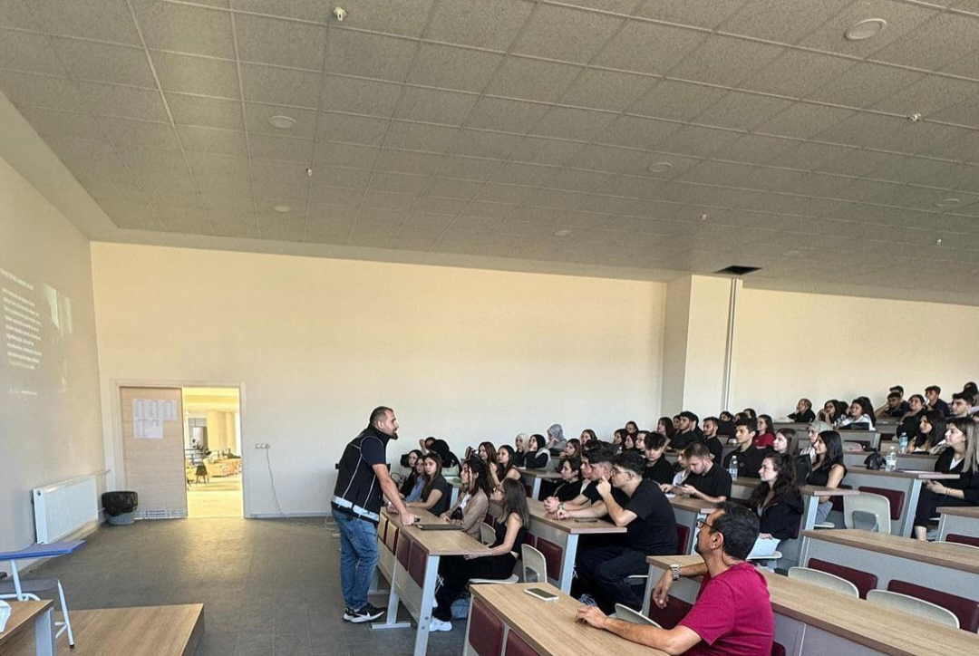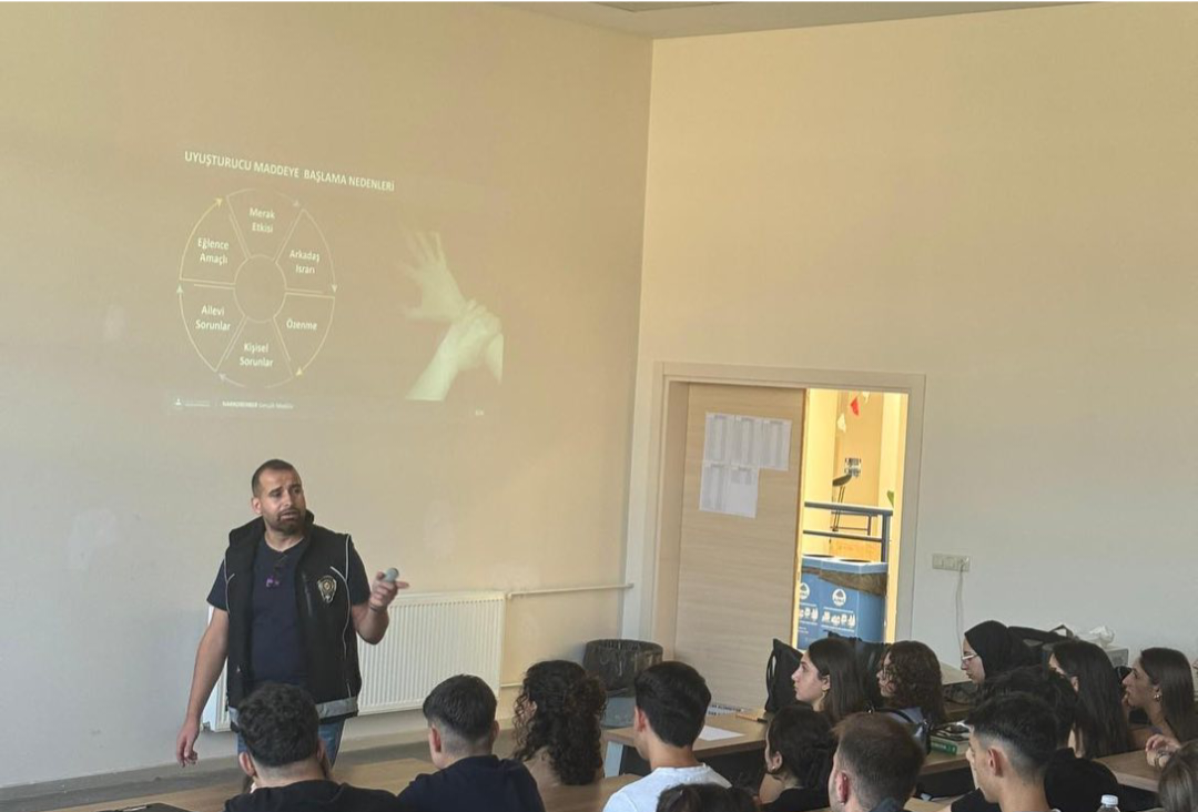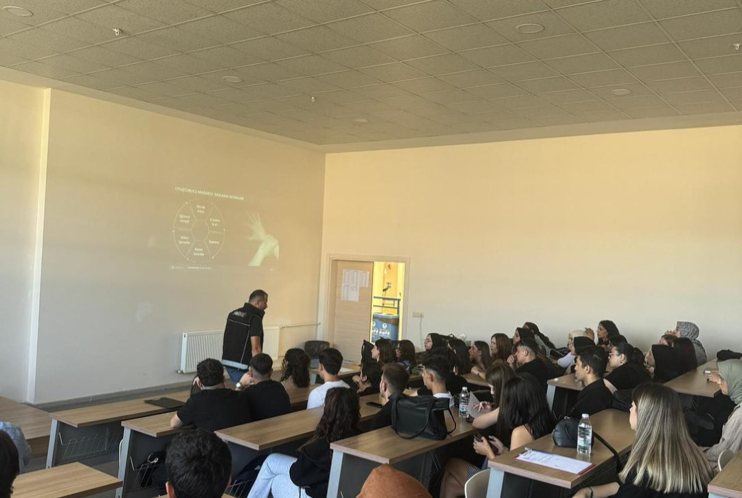 Fakültemizde 1. Sınıf öÄŸrencilerimize 08.10.2024 tarihinde bağımlılıkla mücadele eÄŸitimi verilmiÅŸtir.