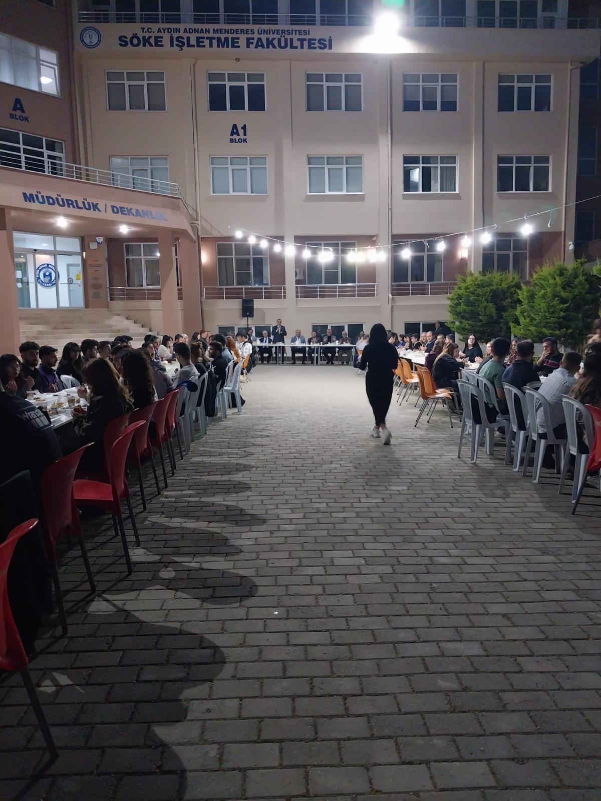Fakültemiz Dekanı Prof. Dr. Cemal İYEM davetiyle düzenlenen iftar programında baÅŸta Söke Kaymakamımız Ali AKÇA, Söke İlçe Jandarma Komutanı Mehmet Emre MENGİ, Söke İlçe Tarım Müdürü Zeki BERHUNİ, Söke Müftüsü Ali Saim DOÄžRU, Söke Meryem YazıcıoÄŸlu KYK Kız Yurdu Müdürü Aynur KİRİŞÇİ, Söke Ticaret Odası Yönetim Kurulu BaÅŸkanı Metin SAKALAR ve Meclis BaÅŸkanı Veysel KARA, Söke Ticaret Borsası Meclis BaÅŸkanı Ali ÖZDERİCİOÄžLU, Söke Ziraat odası BaÅŸkanı Mustafa TANYERİ, Fakültemiz ÖÄŸretim Üyeleri, İdari personel ve ÖÄŸrenicilerimiz bir araya geldiler.