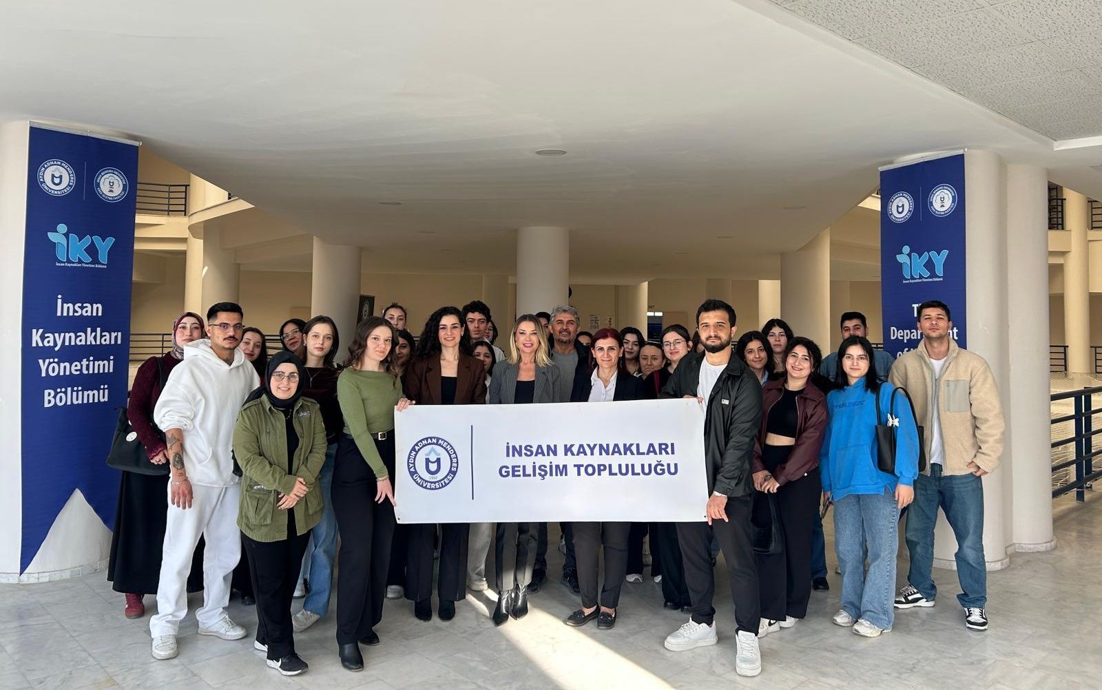 Söke İşletme Fakültesi, İnsan Kaynakları Yönetimi bölümü öÄŸrenci topluluÄŸu olan İnsan Kaynakları GeliÅŸim TopluluÄŸu 2025-26 güz yarıyılının ilk etkinliÄŸini gerçekleÅŸtirdi. 25 Kasım 2025 Salı günü C blok Konferans Salonu'nda gerçekleÅŸen etkinliÄŸe Ege Gazbeton & Çimstone İnsan Kaynakları Grup Müdürü TuÄŸba MORAL ve A Sınıfı İş GüvenliÄŸi Uzmanı GülÅŸah ÜNAL konuÅŸmacı olarak katıldılar. Topluluk danışmanı Doç Dr. Funda ODUNCUOÄžLU'nun moderatörlüÄŸünde gerçekleÅŸen "İnsan Kaynaklarına Güncel Yaklaşım ve Sektörel GeliÅŸmeler" konulu seminere bölüm öÄŸrencilerinin ve öÄŸretim üyelerinin yoÄŸun ilgisi oldu. EtkinliÄŸin gerçekleÅŸtirilmesinde emeÄŸi geçen Fakültemiz İnsan Kaynakları GeliÅŸim TopluluÄŸu'na, danışmanları Doç. Dr. Funda ODUNCUOÄžLU'na, konuÅŸmacı olarak katılımlarıyla öÄŸrencilerimize deneyim ve bilgilerini aktaran Sayın TuÄŸba MORAL ve Sayın GülÅŸah ÜNAL'a, katılım gösteren öÄŸrencilerimize ve öÄŸretim üyelerimize teÅŸekkür ederiz.