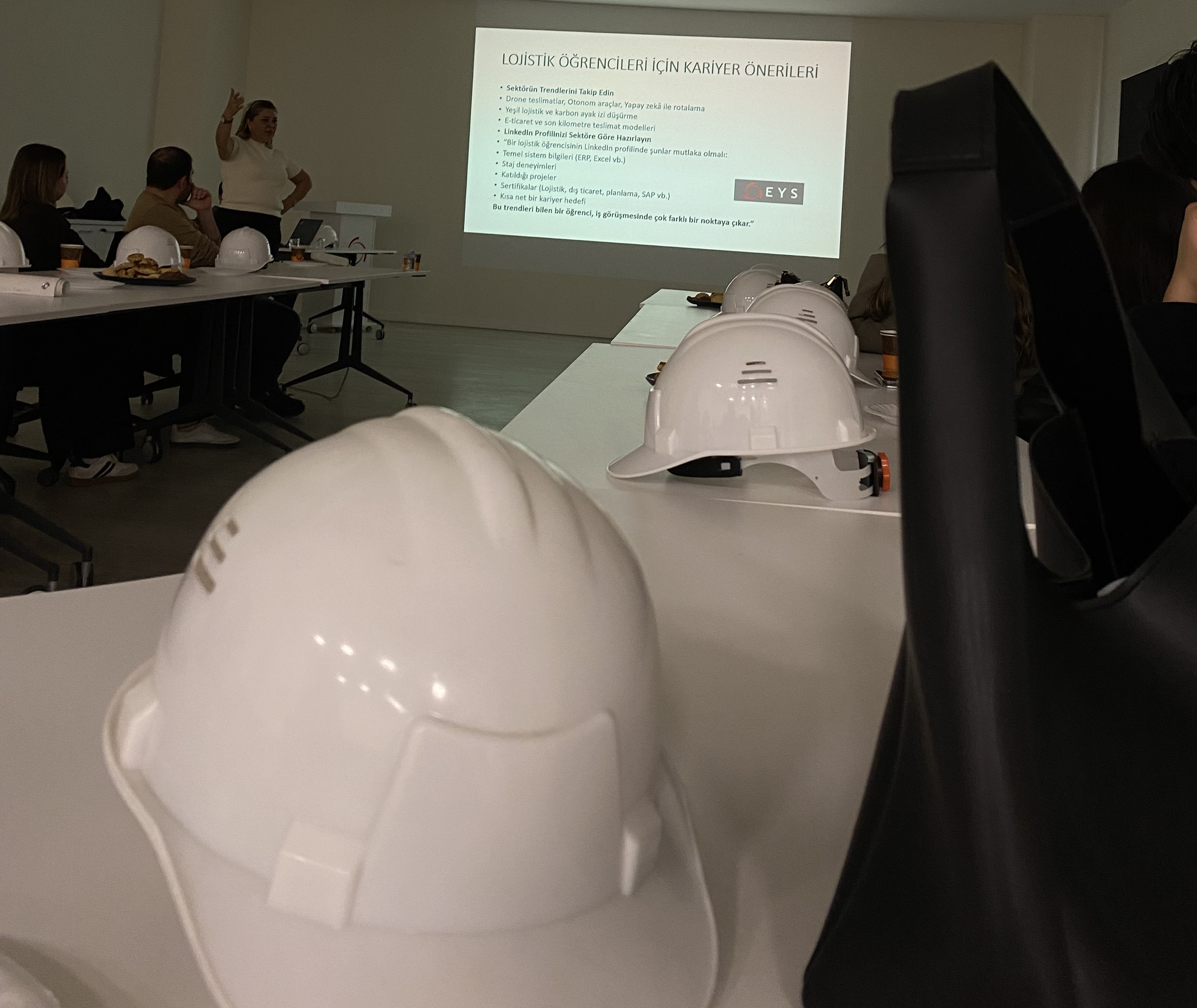Fakültemiz Lojistik Tanıtım TopluluÄŸu 2025-26 Güz Yarıyılının ilk gezisini gerçekleÅŸtirdi. ÖÄŸrencilerimizin gerek üretim süreçlerini yerinde inceleme fırsatı bulması gerekse sektör dinamiklerini profesyonellerden dinlemesi açısından önemli ve yararlı olan EYS Makina Teknik Gezisi 12 Aralık 2025 Cuma günü 14.00-16.00 saatleri arasında gerçekleÅŸti. Bu organizasyonun gerçekleÅŸtirilmesine katkı saÄŸlayan Dış Ticaret ve Lojistik Uzmanı Anıl TATLIÇ, Yurt Dışı Satış Direktörü A. Umut DOÄžRUAK, Yurt Dışı Satış ve Proje Müdürü Atakan SOSYAL, Mobil Makine Pazar GeliÅŸtirme Müdürü Taner DELİKARA, Dış Ticaret Uzman Yardımcısı Bircan TÜFEKÇİ ve Dış Ticaret Asistanı İlayda KEYDİREN'e gün boyunca gösterdikleri ilgi, detaylı anlatımları ve içten rehberlikleri için teÅŸekkür ederiz. ÖÄŸrencilerimize ayırdıkları zaman ve saÄŸladıkları katkılar gezimizi çok daha verimli kıldı. Ayrıca İnsan Kaynakları Müdürü Serap SONSOY'a, Üretim Müdürü Kaan KARABIYIK'a, İnsan Kaynakları Uzman Yardımcısı Alperen SUNAY'a, Depo Sorumlusu Baran BATUR'a, İdari İşler Yöneticisi Mehmet BÜYÜKKARATAÅž'a ve Yönetici Asistanı Saadet KARAKAÅžLI’ya organizasyondaki emekleri, yönlendirmeleri ve destekleri için teÅŸekkür ederiz. ÖÄŸrencilerimiz ve Fakültemiz EYS Makina Ailesi'ne teÅŸekkür eder, iÅŸ birliÄŸimizin devamını dileriz.