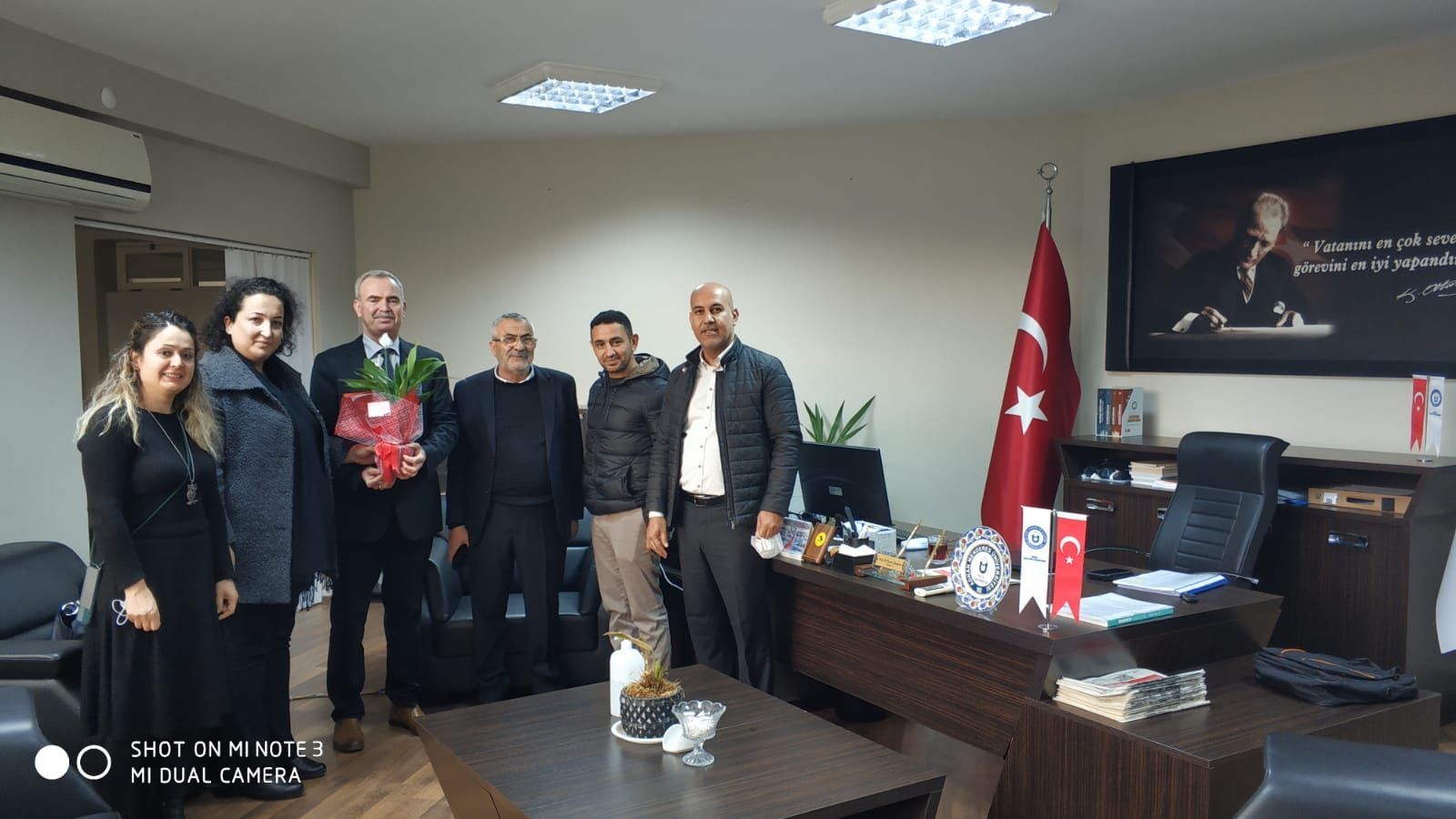 MHP Söke İlçe BaÅŸkan Yardımcısı Ahmet TokmakoÄŸlu ve Serkan Apaydın ile teÅŸkilat üyeleri Hilal Ayyıldız AteÅŸ, Funda Öztürk, Erkan Tömen 24 Kasım ÖÄŸretmenler Günü nedeniyle Adnan Menderes Üniversitesi Söke İşletme Fakültesi Dekanı Turan Akkoyun'u ziyaret etti.