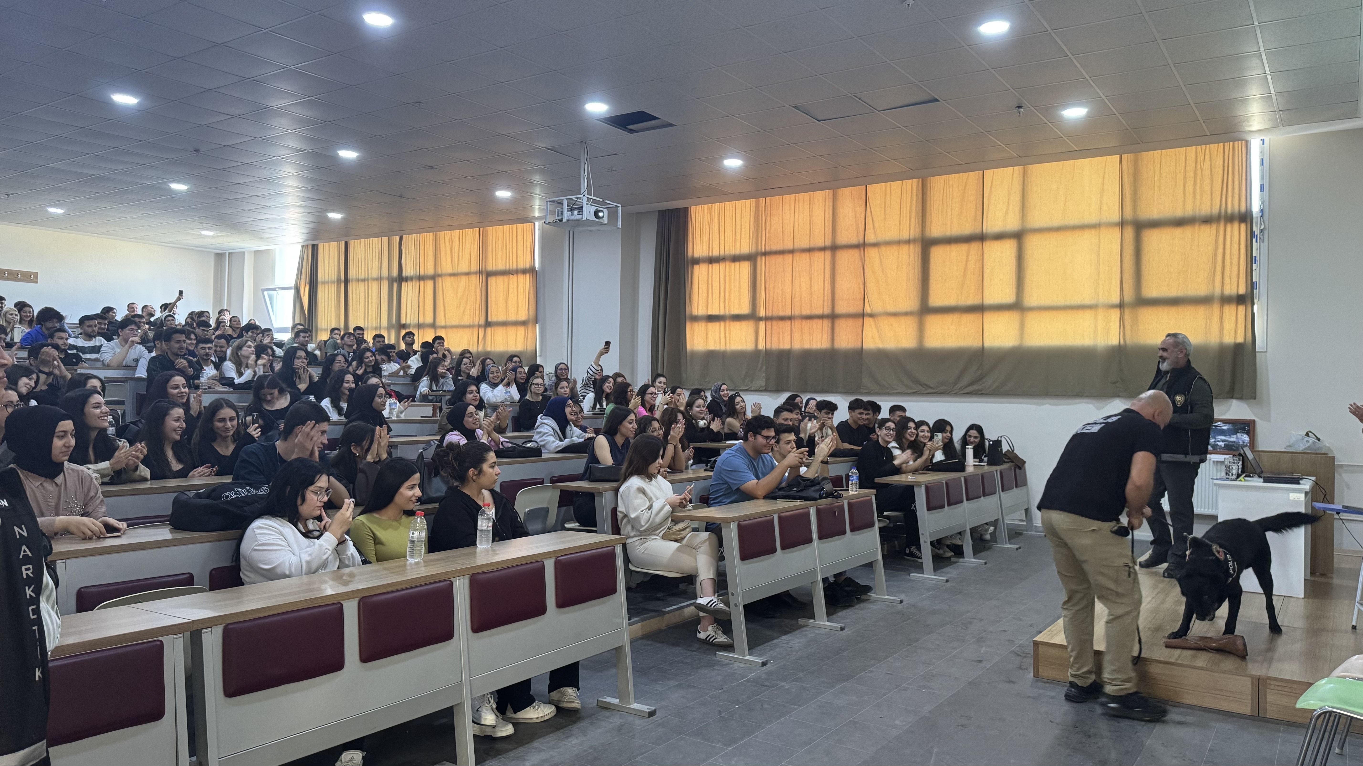 Üniversitemiz ve Aydın İl Emniyet MüdürlüÄŸü ortaklığında düzenlenen NARKO GENÇLİK ve NARKOREHBER eÄŸitim faaliyetlerinin yeni ayağı 15.10.2025 tarihinde Fakültemizde C blok 405 nolu amfide 14.30'da gerçekleÅŸtirildi. UyuÅŸturucu madde bağımlılığı ve bağımlılık sorunu karşısında çözüm yolları ve önerileri gibi konularda gençlerin bilinçlendirilmesi ve farkındalık düzeylerinin artırılarak uyuÅŸturucu madde kullanımının önüne geçmek, madde kullanımının erken tespiti ile bağımlılık sarmalına yakalanmadan saÄŸlıklı ve güvenli yarınlar yaratmak, bu kapsamda geleceÄŸimizin teminatı olan gençlerimizi tehlikeden uzak tutmak, korumak ve ilimizdeki öÄŸrencilerimize yanında olduÄŸumuzu hissettirebilmek adına düzenlenen etkinlik birinci sınıf öÄŸrencilerimizin yoÄŸun katılımıyla gerçekleÅŸti. EtkinliÄŸin gerçekleÅŸmesine katkı veren Emniyet MüdürlüÄŸü yetkililerine, Bağımlılıkla Mücadele Komisyonu üyesi ArÅŸ. Gör. Dr. Hatice CAN, ArÅŸ. Gör. Dr. Batuhan ÇULLU ve ArÅŸ. Gör. Dr. Burcu DEMİRDÖVEN'e, katılım gösteren öÄŸrencilerimize teÅŸekkür ederiz.