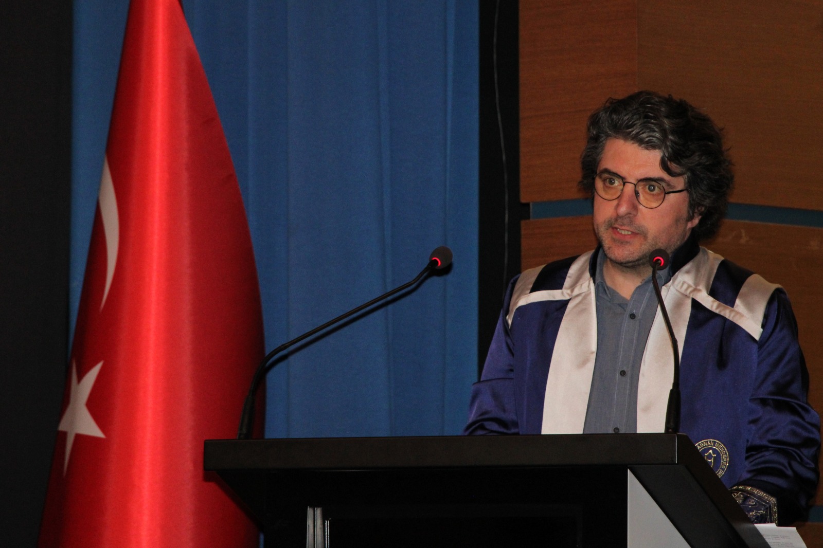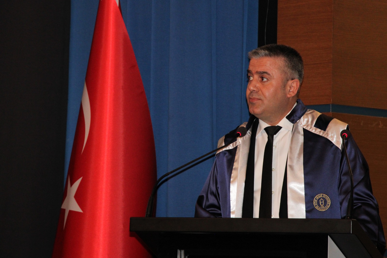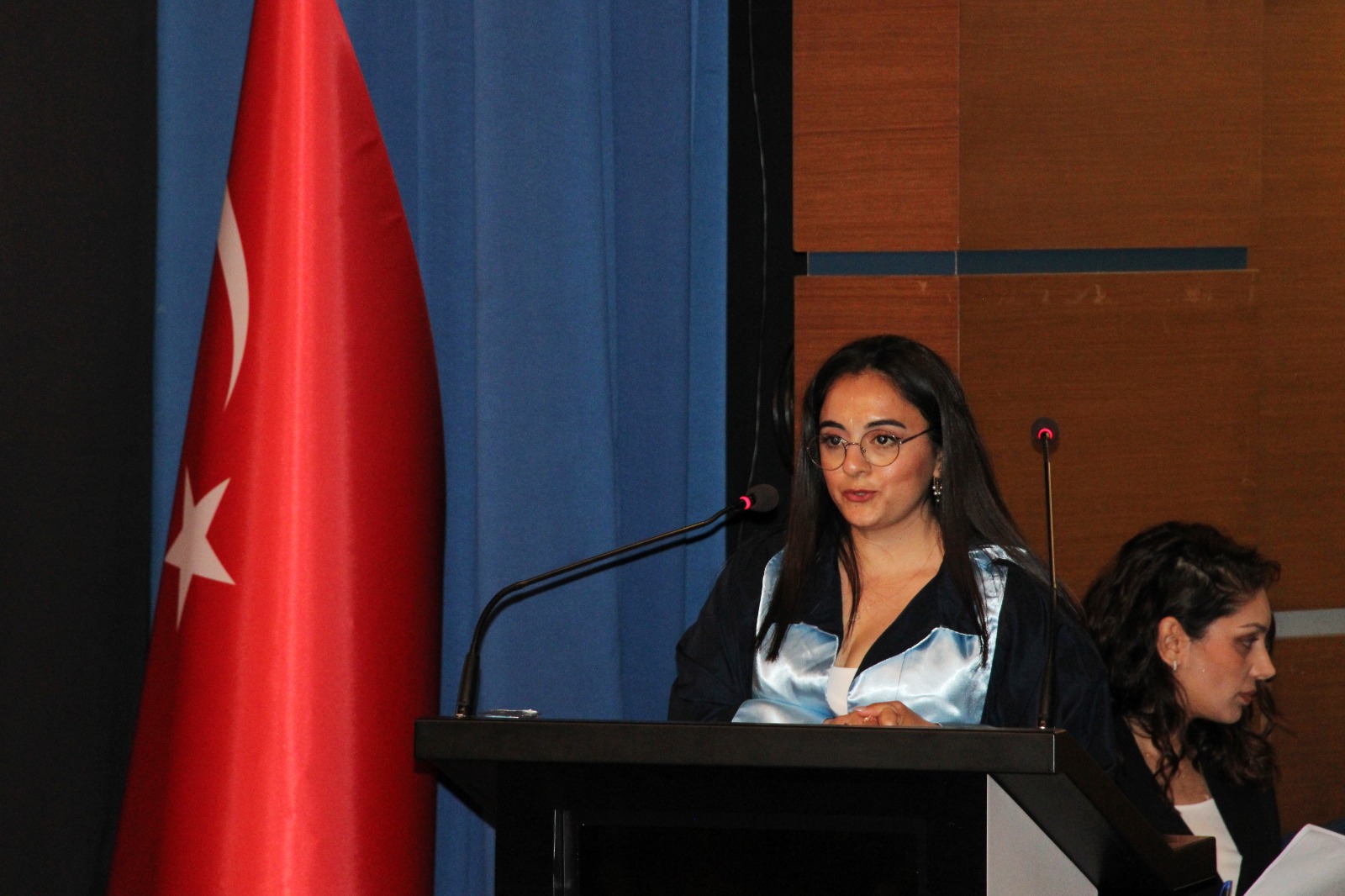 Saygı Duruşu ve İstiklal Marşı’nın ardından açılış konuşmalarını sırasıyla fakülte birincisi Başak Keskin, Söke İşletme Fakültesi Dekan Yardımcısı Dr. Öğr. Üyesi Özgür Balmumcu ve Üniversitemiz Rektör Yardımcısı Prof. Dr. Erkan Salan yaptılar.
