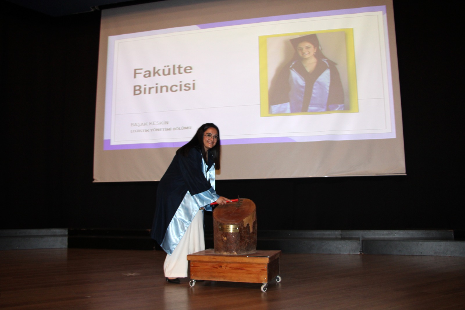 Söke İşletme Fakültesi 2024-2025 Akademik yılı birincisi Başak Keskin konuşmasında kendisi ve tüm mezunlar adına ailelere ve öğretim elemanlarına teşekkürlerini iletti. Konuşmasının ardından fakülte birincisi Başak Keskin’e Üniversitemiz Rektör Yardımcısı Prof. Dr. Erkan Salan tarafından plaketi takdim edildi.