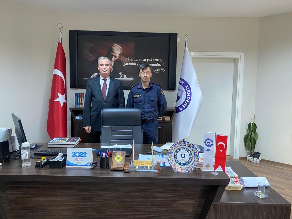 İlçe Jandarma Kumandanı Binbaşı Salih Devrim Söke İşletme Fakültesi Dekanlığına ÖÄŸretmenler Günü nedeniyle nezaket ziyaretinde bulundu