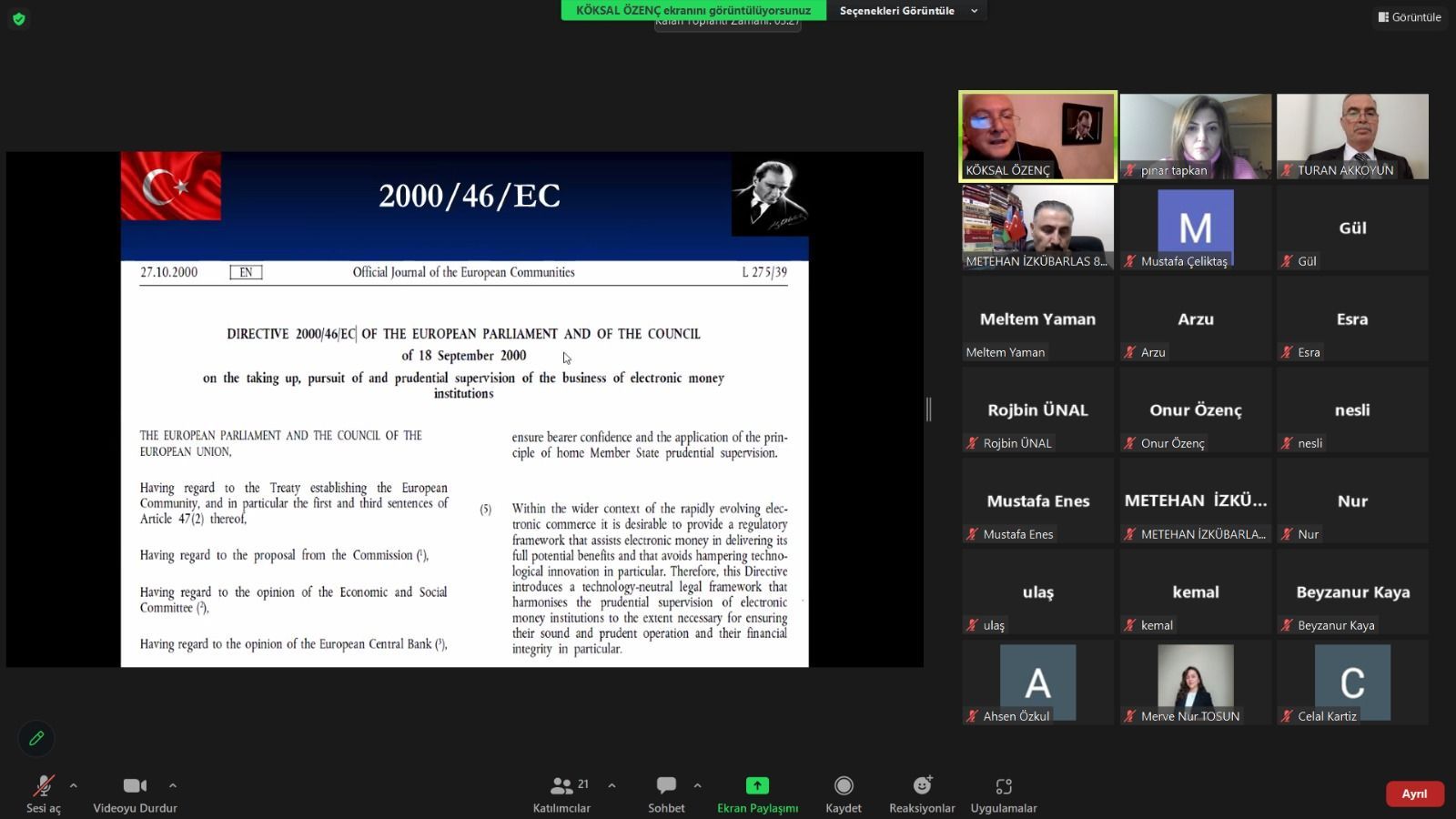 Avrupa BirliÄŸi uzmanı, telekomünikasyon uzmanı, biliÅŸim uzmanı olarak TSE, Telekomünikasyon Kurumu, UlaÅŸtırma ve Altyapı Bakanlığı’nda görevlerde bulunan Sayın Köksal Özenç; siber güvenlik alanında gerek ülkemizde gerekse dünyadaki çalışmalardan bahsederek ülkemizi daha ileriye taşıyabilmek için önem verilmesi gereken alanları vurgulamıştır.