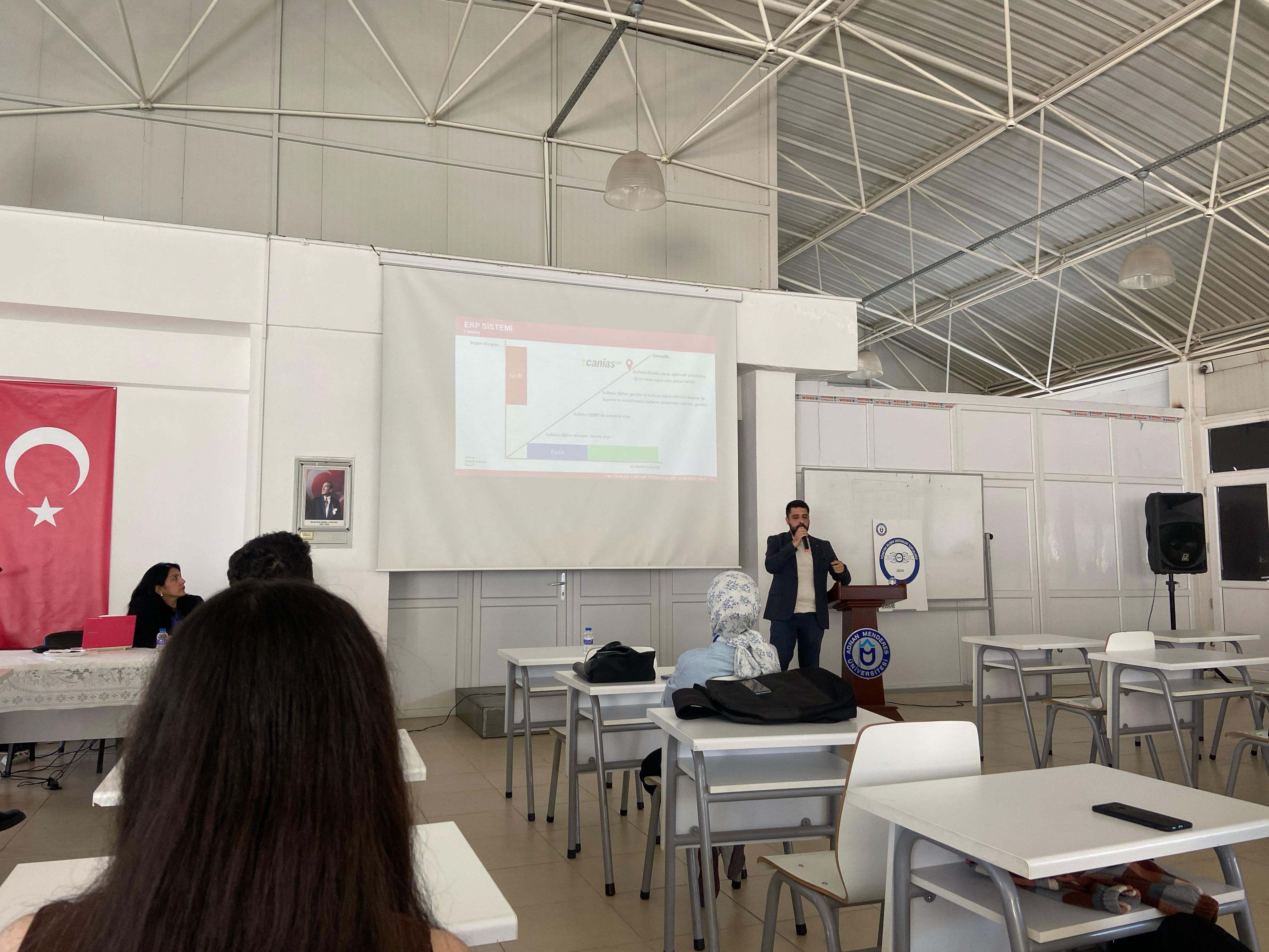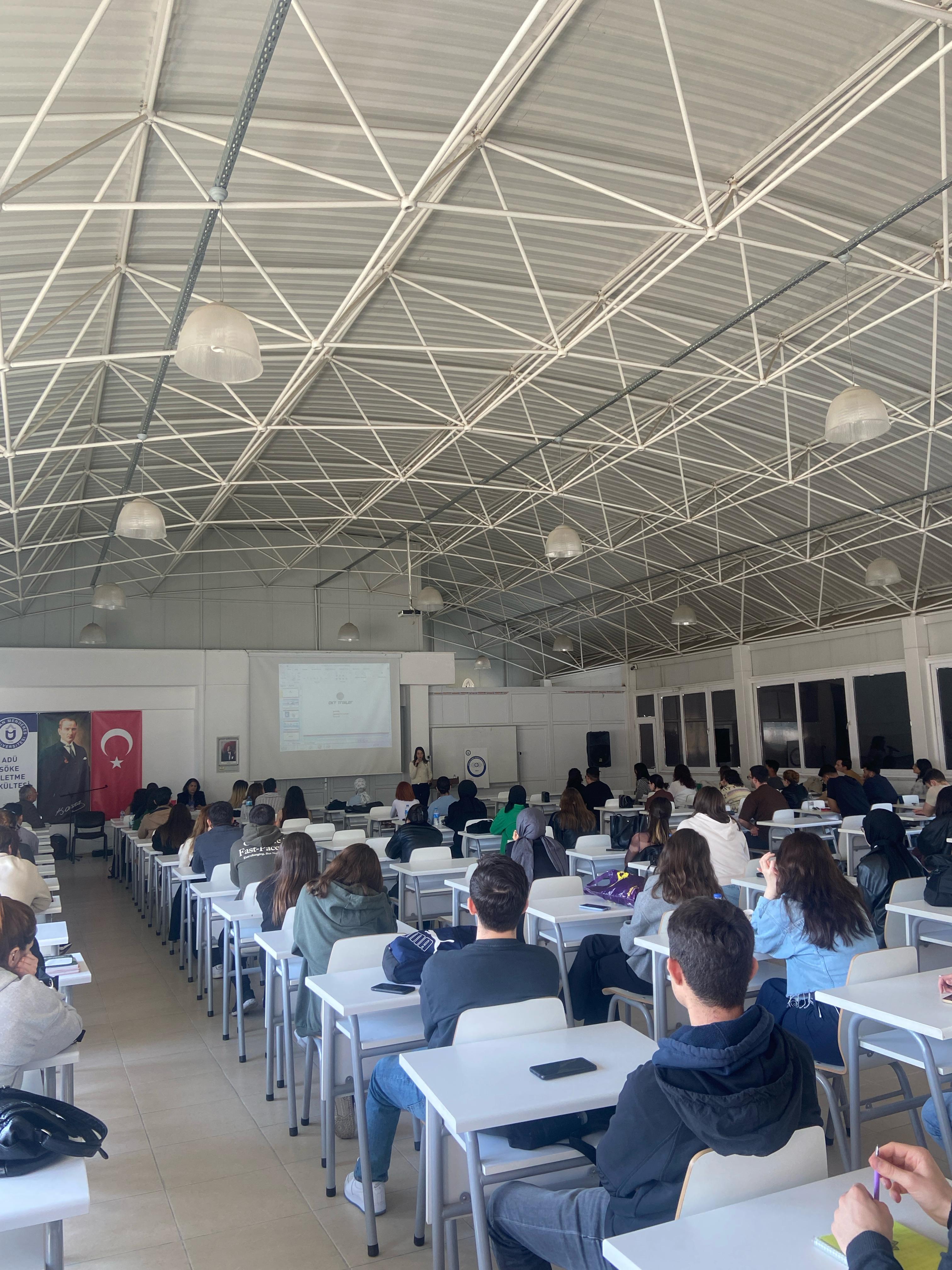 Değerli konuşmacılar yaptıkları sunumlarında, Aydın Adnan Menderes Üniversitesi Sürekli Eğitim Merkezi, Aydın Çalışma ve İş Kurumu ve OK Kardeşler Treyler San. ve Tic. A.Ş. iş birliği ile yürütülen “Mühendis Formasyon Eğitim Programı” hakkında fakültemiz öğretim üyelerine ve öğrencilerine son derece yararlı bilgiler vermişlerdir.