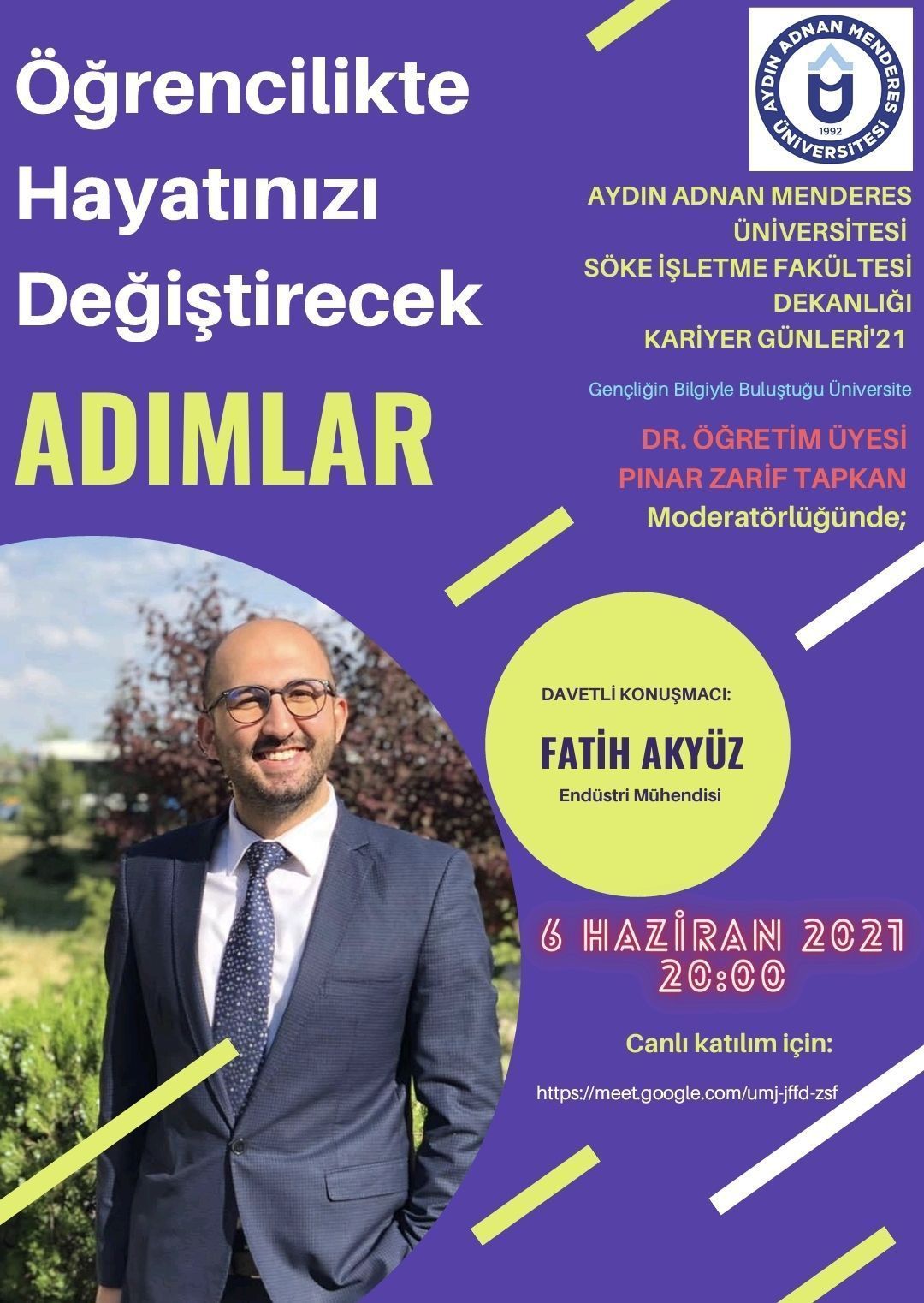 Moderatörlüğünü Söke İşletme Fakültesi Dekan Yardımcısı Dr. Öğretim Üyesi Pınar Zarif TAPKAN’ın yürüttüğü etkinliğin konuğu Endüstri Mühendisi Fatih AKYÜZ oldu.
