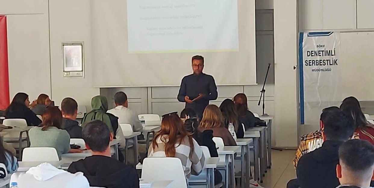 Söke İşletme Fakültesi ve dış paydaÅŸlarından olan Denetimli Serbestlik MüdürlüÄŸü iÅŸ birliÄŸi ile 09.10.2022 tarihinde ve saat 15.00’de Denetimli Serbestlik MüdürlüÄŸü uzmanlarından sosyolog Kenan Gündal öÄŸrencilerimize “UyuÅŸturucu Bağımlılığı ile Mücadele” baÅŸlıklı bir seminer vermiÅŸtir. Fakültemiz ve Denetimli Serbestlik MüdürlüÄŸü ülkemizde ve tüm dünyada hızla artmakta olan madde bağımlılığı konusunda kurumumuzdaki gençleri konuyla ilgili bilgilendirerek, mücadeleye yönelik farkındalık kazandırmayı hedeflemiÅŸtir.