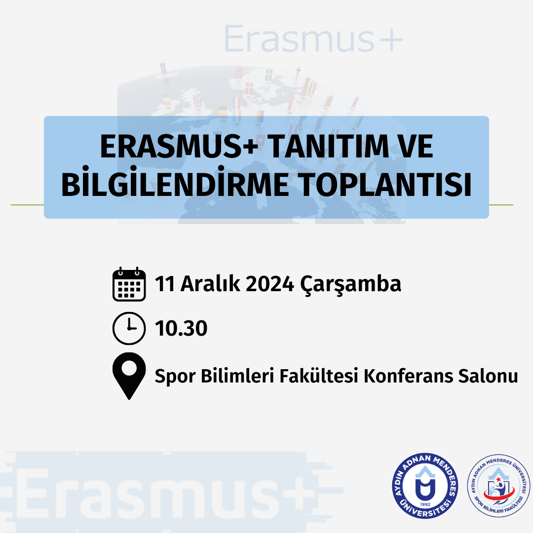 Fakültemiz bünyesindeki öğrencilere ve personellere (akademik ve idari) yönelik ADÜ Uluslararası İlişkiler Koordinatörlüğü tarafından ‘Erasmus Öğrenci Hareketliliği ve Erasmus Personel Hareketliliği’ kapsamında tanıtım ve bilgilendirme toplantısı yapılacaktır. 11 Aralık 2024 Çarşamba günü saat 10.30’da Fakültemiz Konferans Salonunda gerçekleşecek toplantıya tüm öğrencilerimiz ve personelimiz davetlidir.