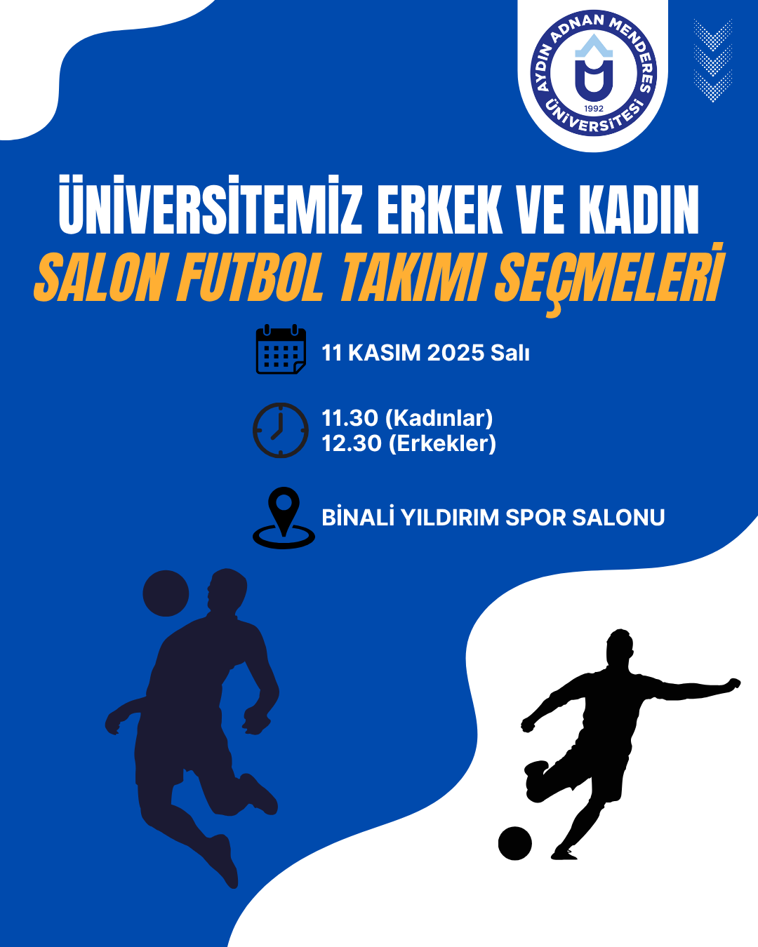 Aydın Adnan Menderes Üniversitesi öğrencileri arasından oluşturulacak erkek ve kadın salon futbolu (futsal) takımları için seçmeler yapılacaktır.